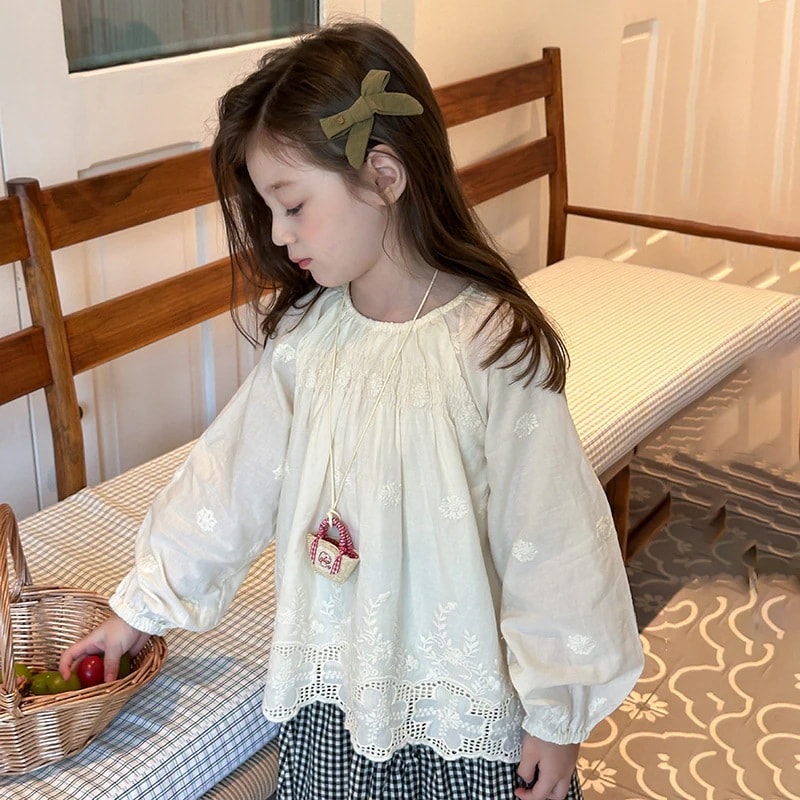 子供 ブラウス女の子用刺繍シャツ 秋用トップス 子供用刺繍花柄ブラウス