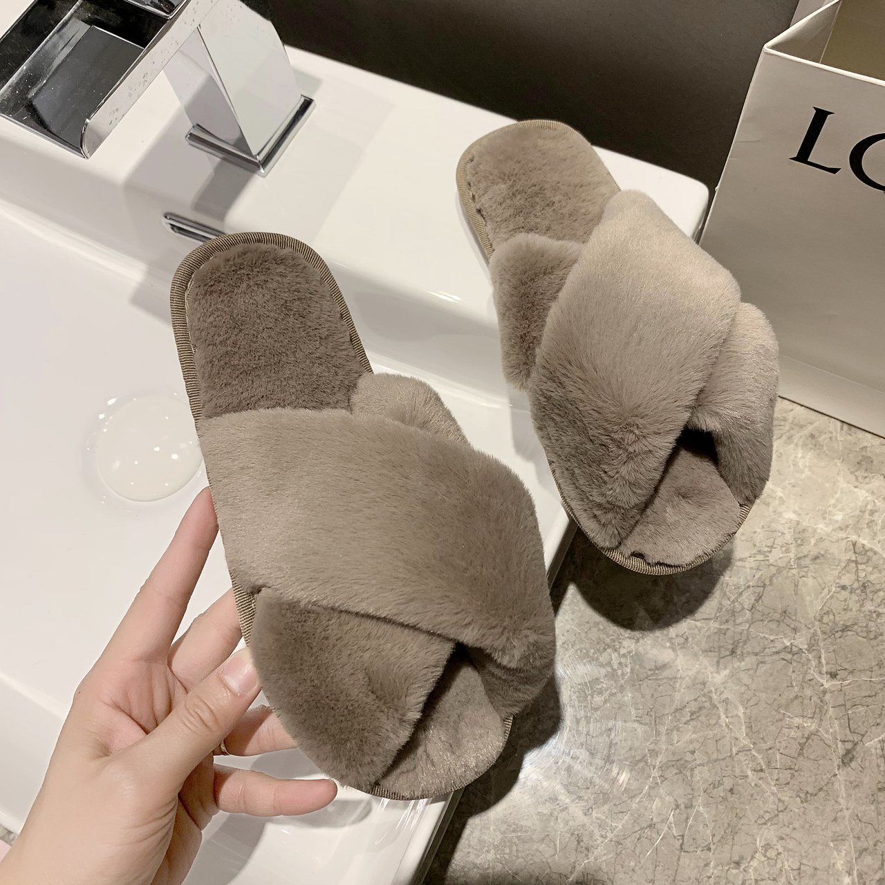 冬用クロスファースリッパ女性用外国貿易43大きいサイズ家庭用ファーオープントゥ暖かい縫製綿スリッパ卸売