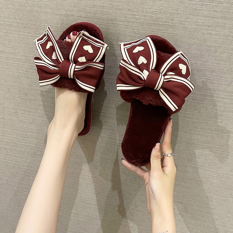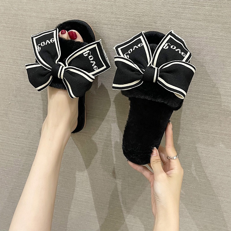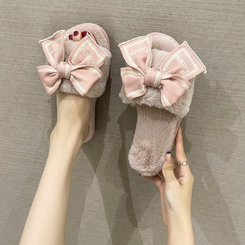韓国のファッションの新しいラブレターの弓の豪華な女性の家の柔らかい底は外で履くことができる滑り止めフラットスリッパ