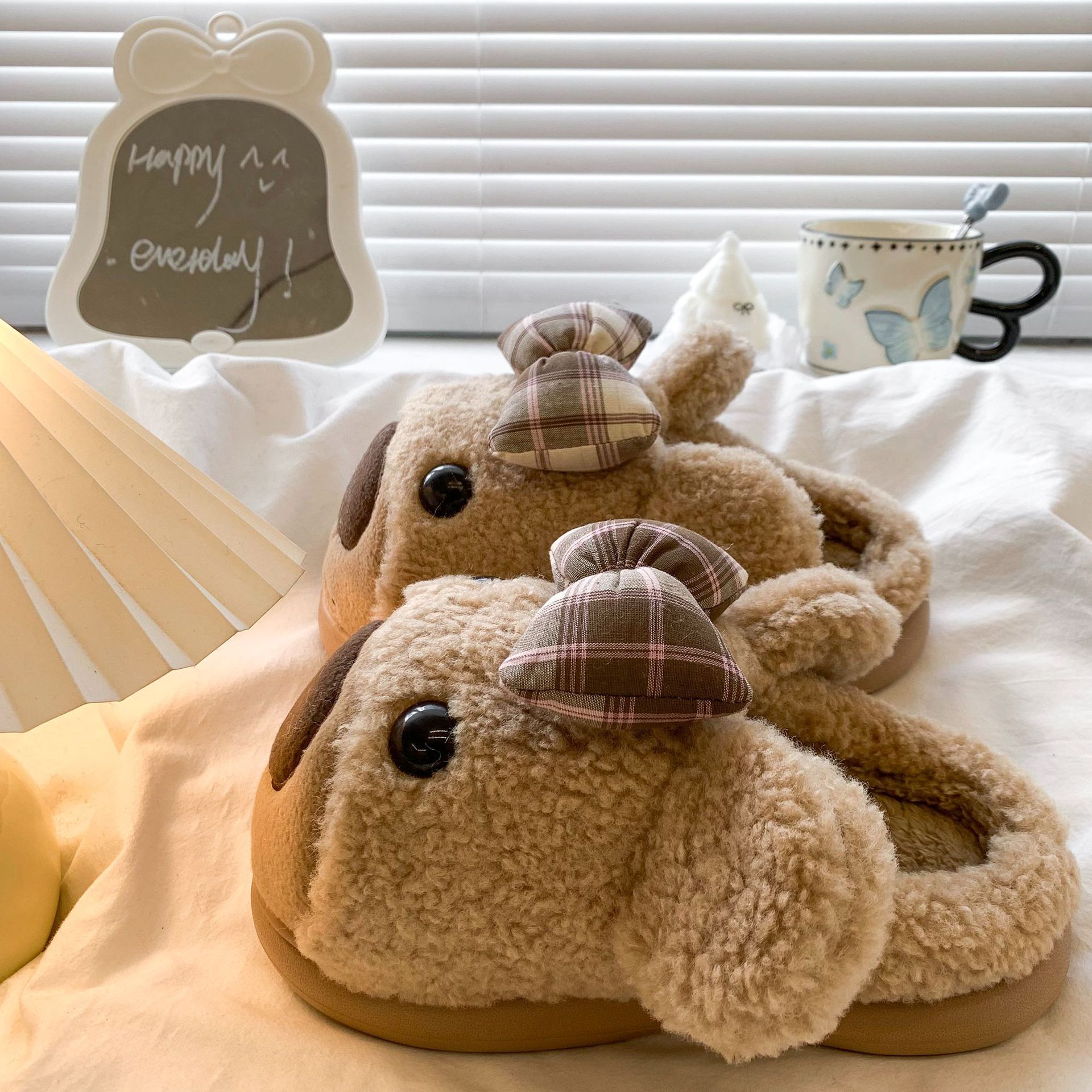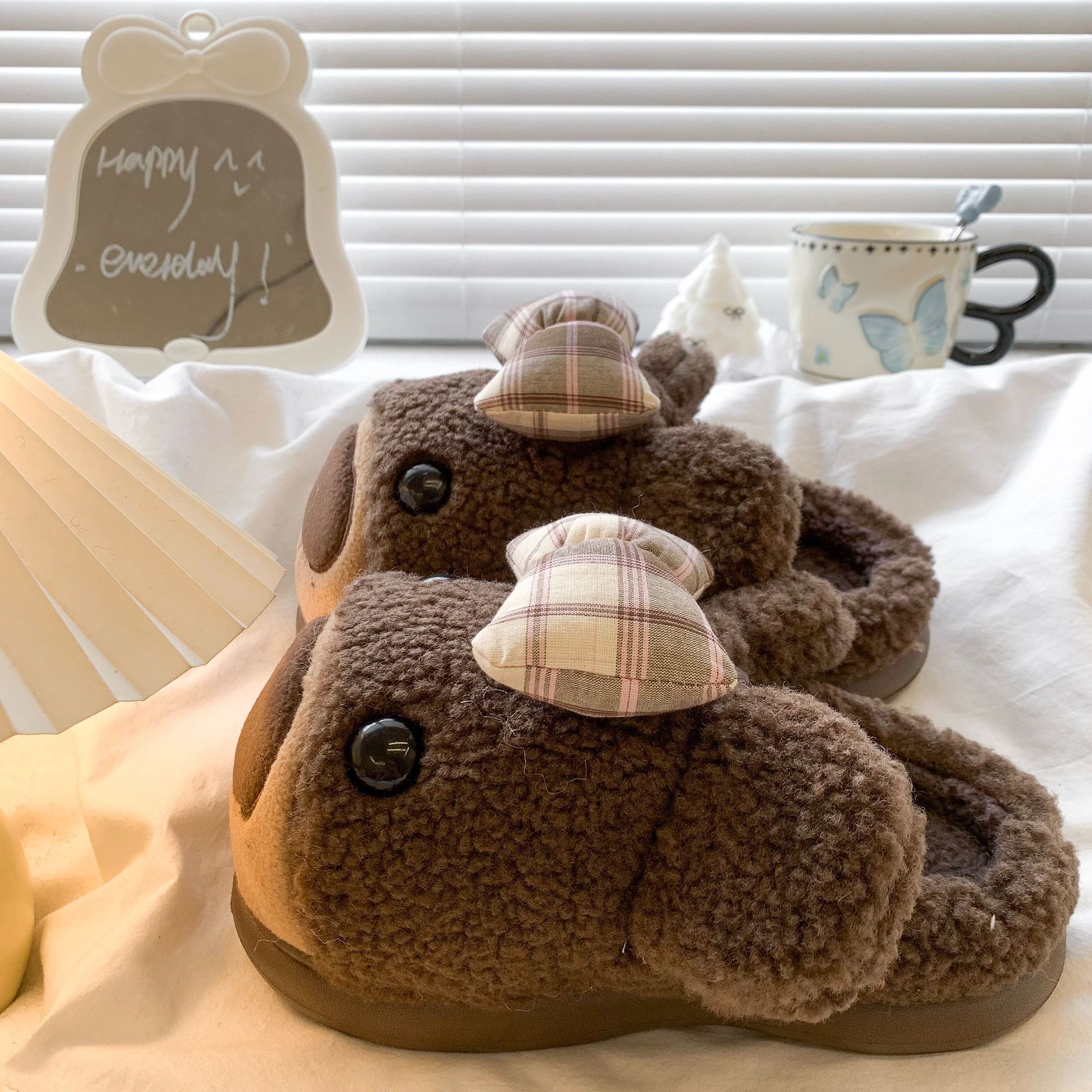 ファッショナブルで多用途なかわいい漫画の毛皮のスリッパ女性用アウターとして着用できます2025年秋冬新作ふわふわで暖かいつま先が閉じた綿のスリッパ