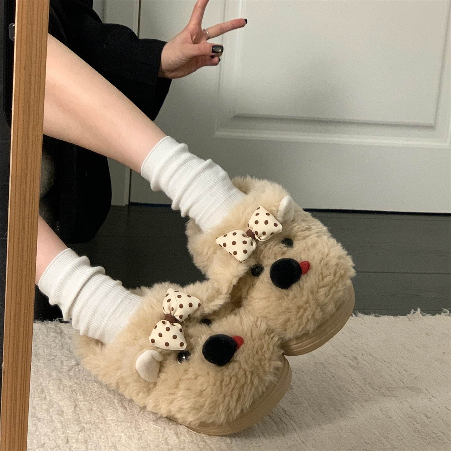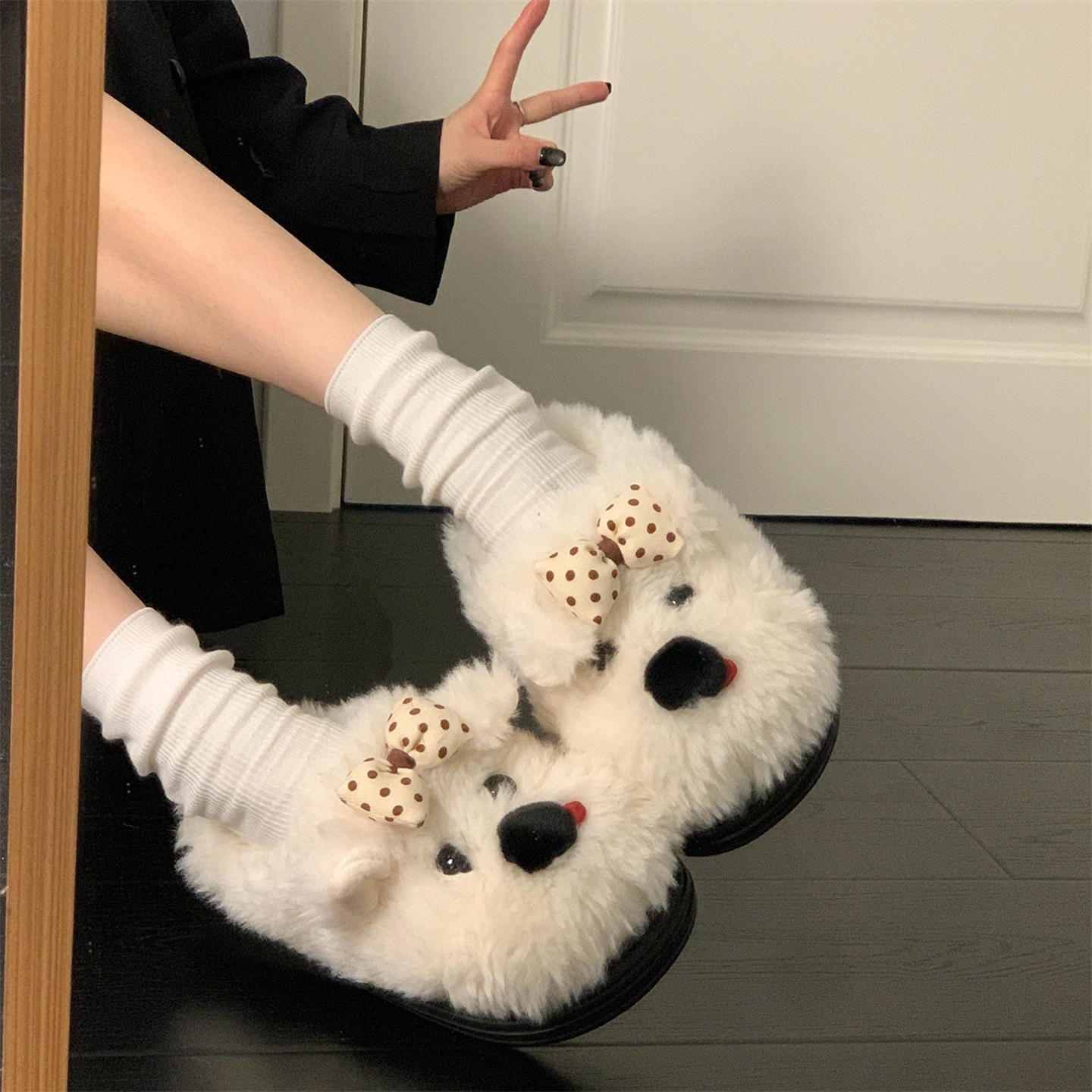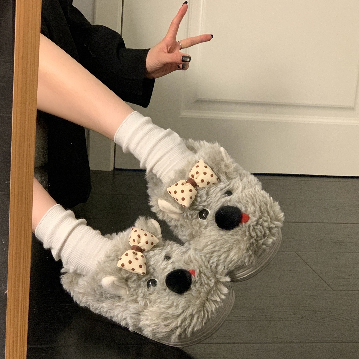 キュートで楽しいぬいぐるみの子犬のスリッパ女性用2025年秋冬新作厚底で快適な滑り止めの暖かい綿スリッパ
