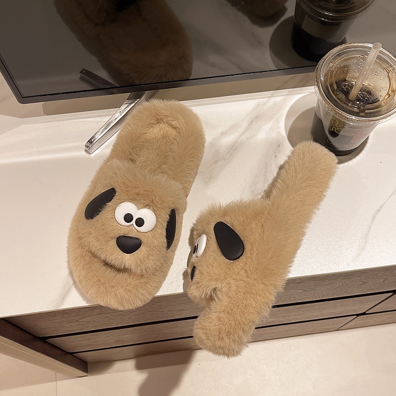 かわいい子犬の人形のスリッパ素敵なカップルスタイルファッショナブルな家庭用ファースリッパアウトドアウェア4CMの厚底の豪華なスリッパ