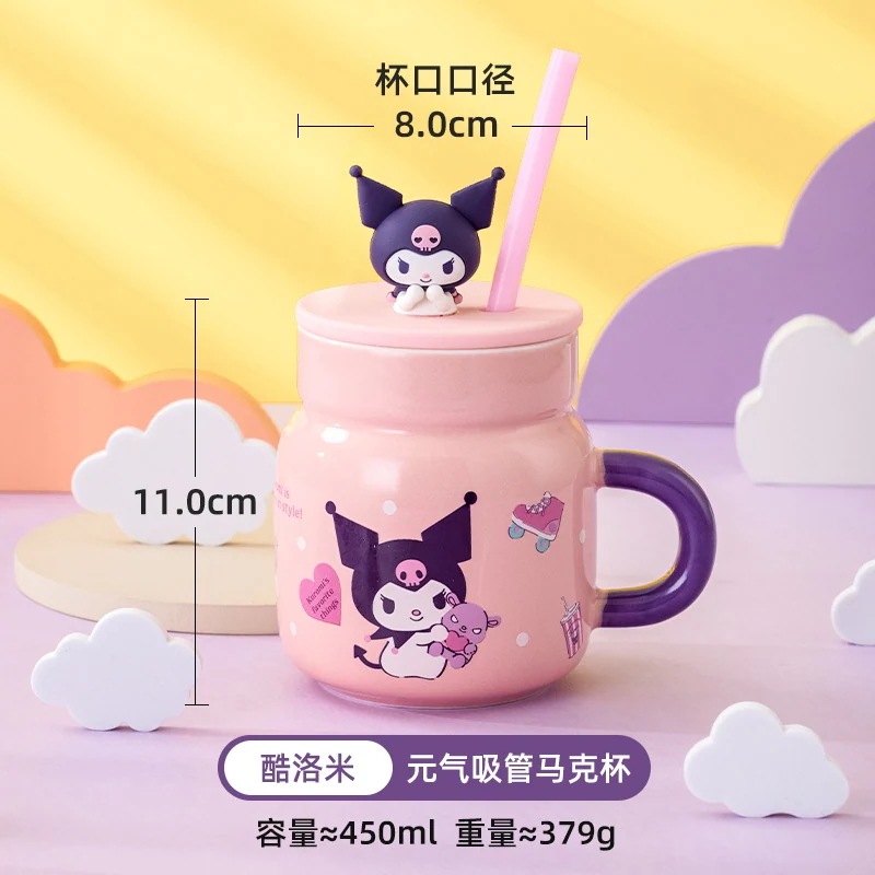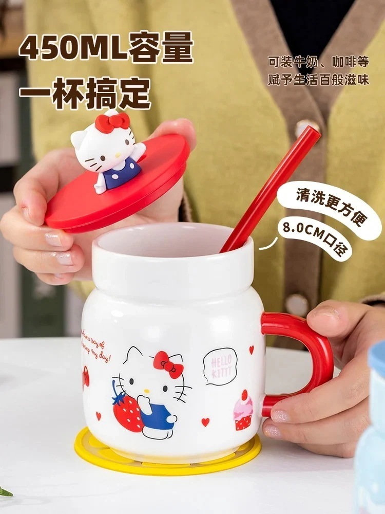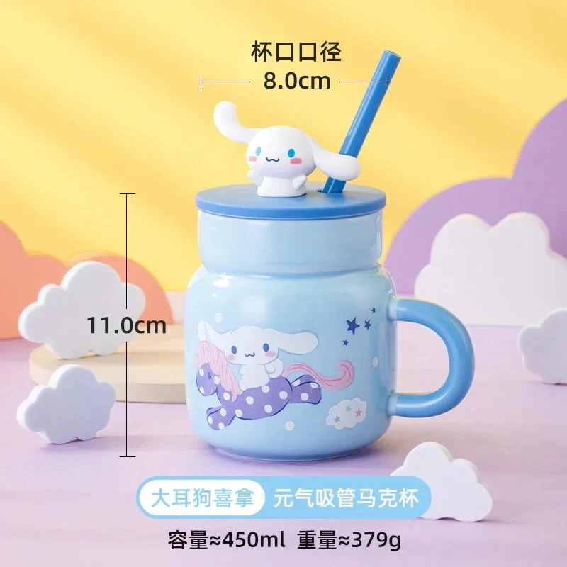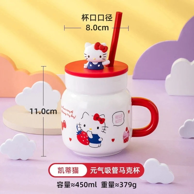 hellokittyセラミックマグカップシリコン蓋付きストローカップ玉桂犬水杯かわいい家庭用女子カップ