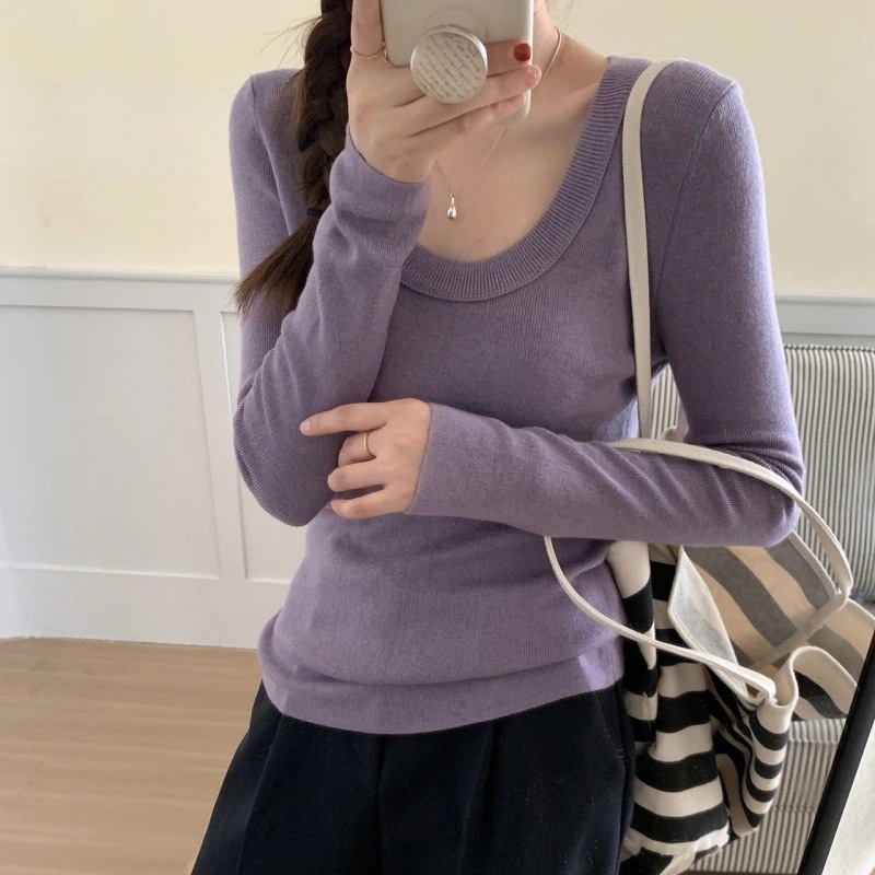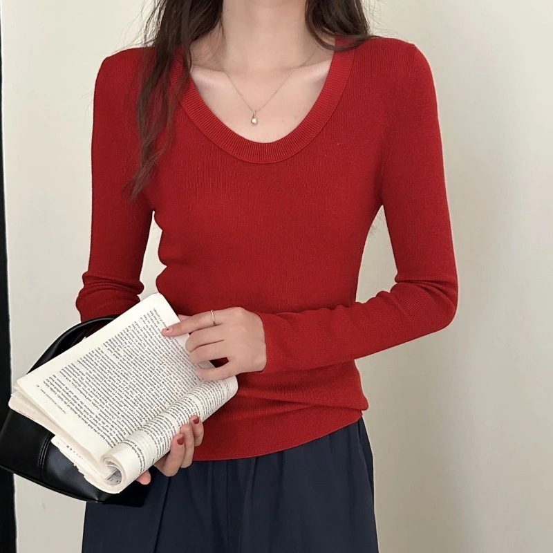 【极速出荷】2025 秋 冬 新作 セーター 柔らかい お肌に優しい 着やせ Uネック スリミング 百掛け アンダーウェアウール ウォーム 秋服 軽量 快適 セーター