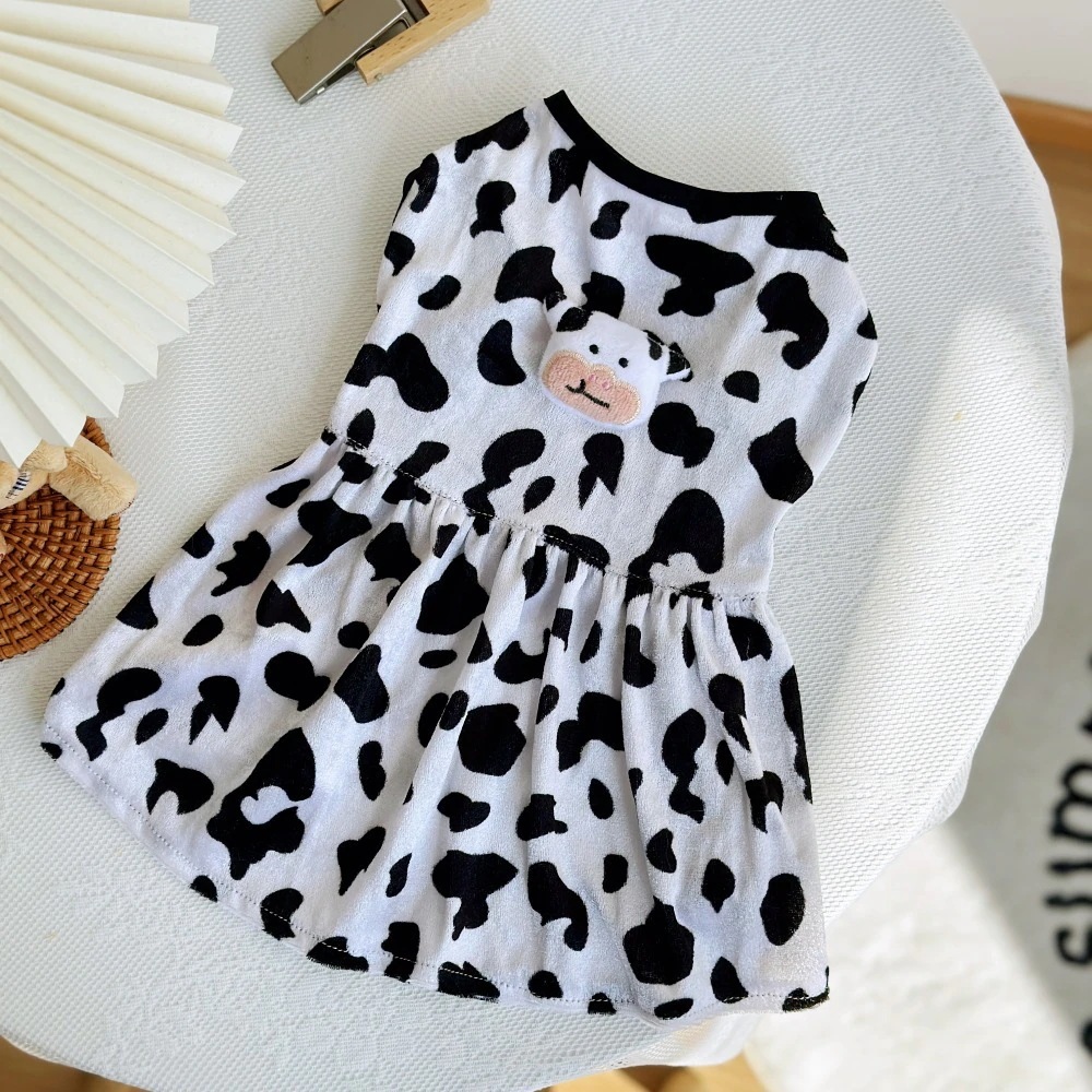 夏用薄手通気性!可愛い牛柄ペットドレス 犬用服 通年着用可能