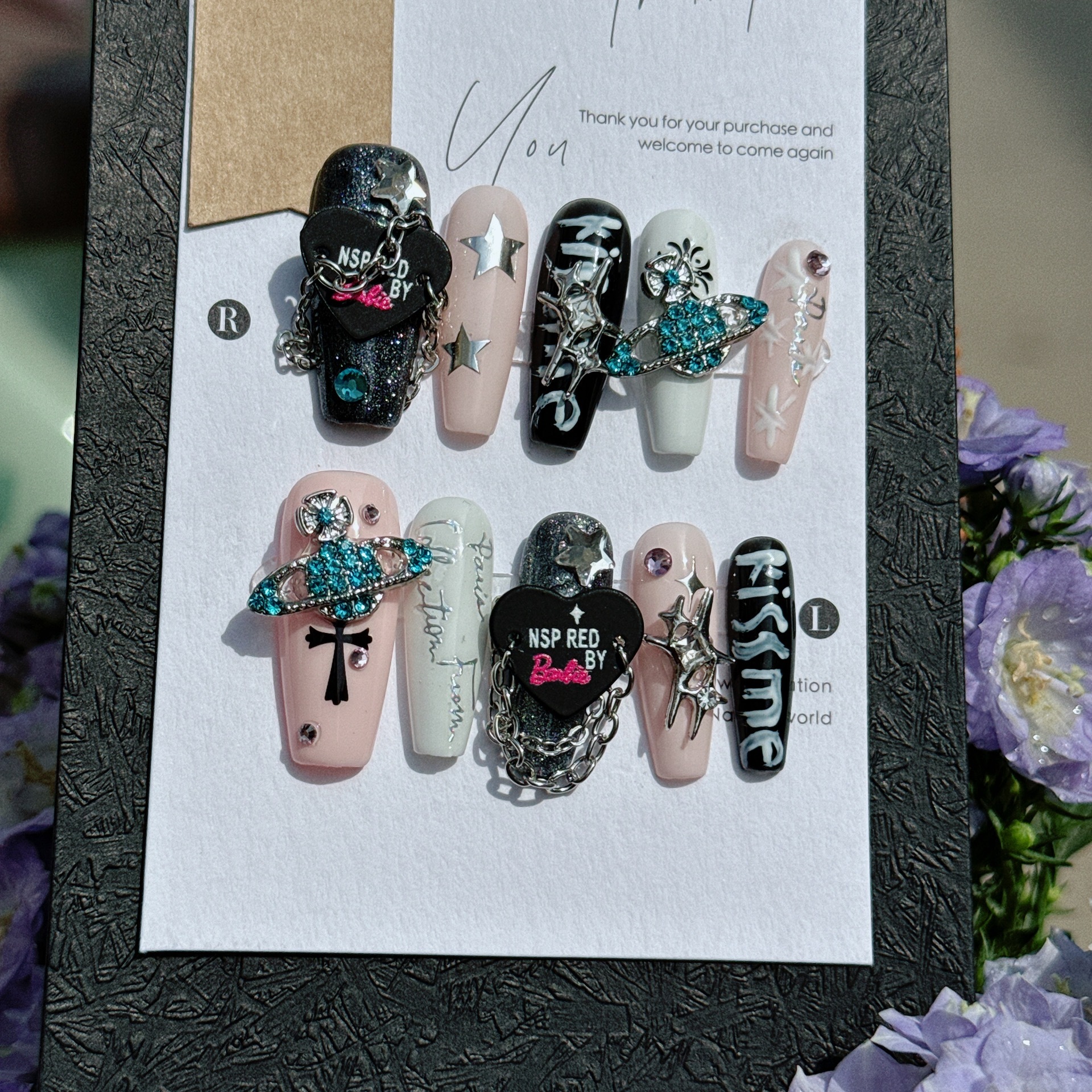ネイコーネイル ミレニアムギャル虹彩風 Y2K プラネットネイル付け爪 プライベート手作り付け爪 取り外し可能