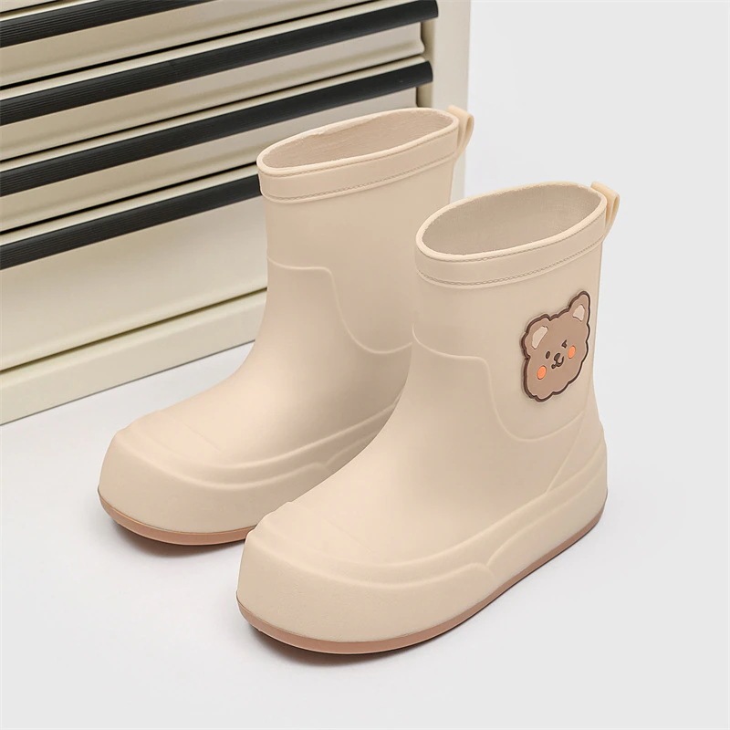 日系ファッションレインブーツ レディースミドル丈 可愛いレインブーツ アウトドア用 滑り止め 防水 ゴム靴 耐摩耗性 キッチンワークシューズ