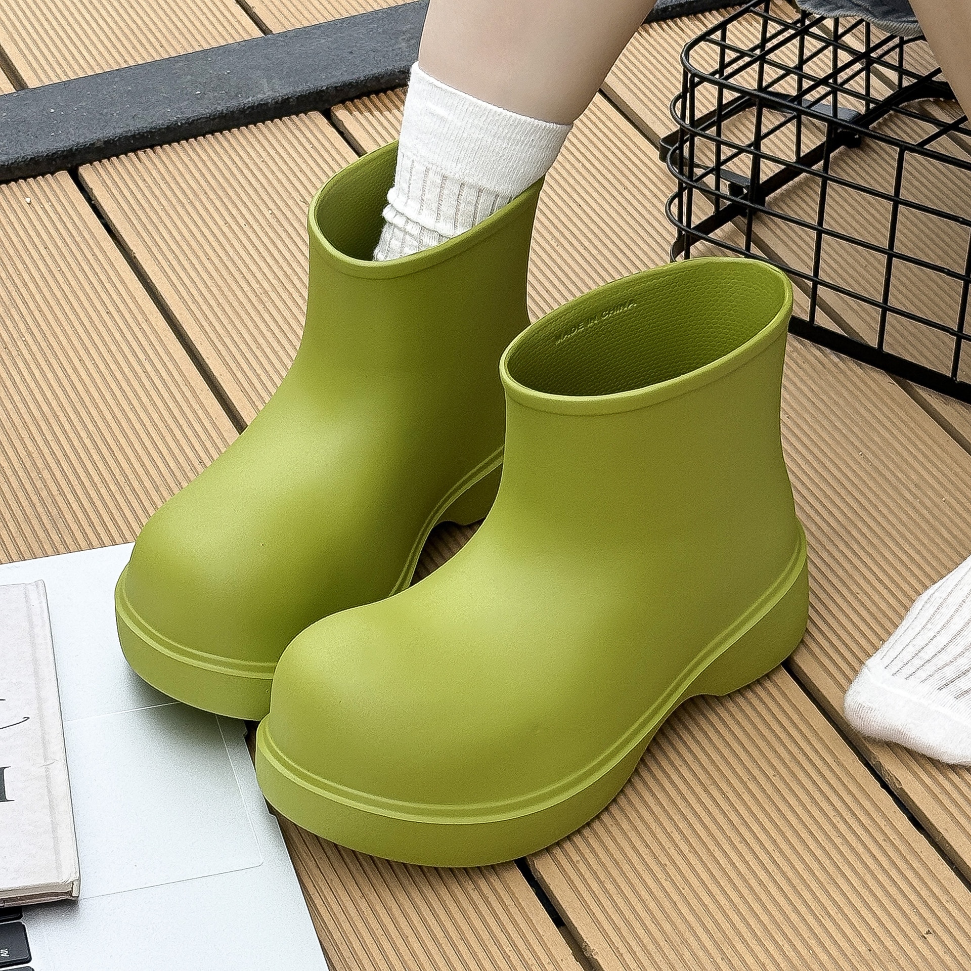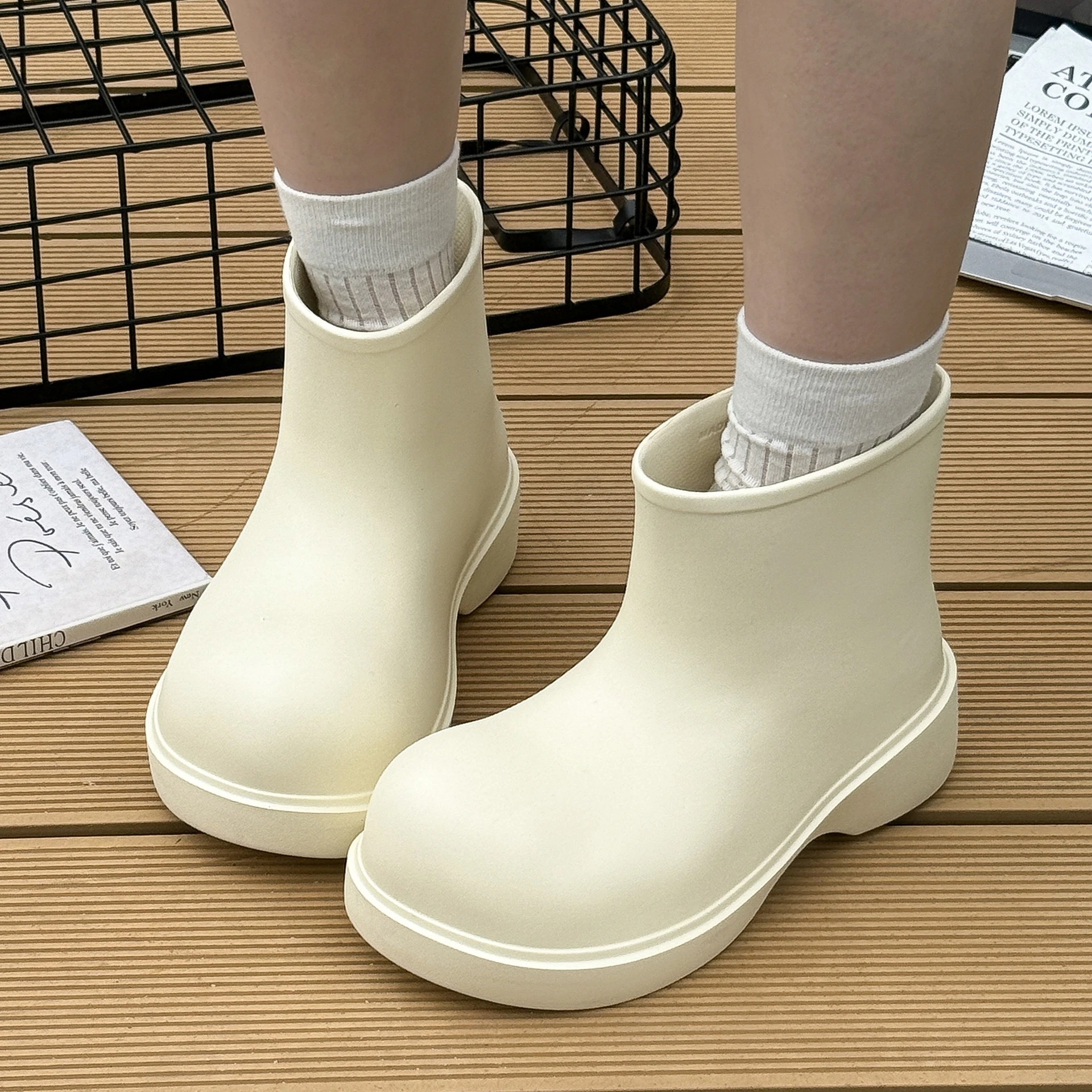 韓国風レインブーツ 女性のショートブーツ EVA防水シューズ ファッショナブル厚底 アウトドア用 滑り止め キッチン用 シンプルデザイン 四季対応
