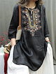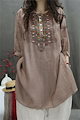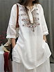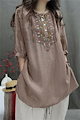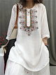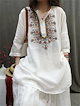 チュニックブラウス リネン チュニック レディース 刺繡ブラウス 七分袖 チュニック 夏 プルオーバー ノーカラー 綿麻風 ナチュラル トップス リネン混 森ガール キレイめ 大きいサイズ 体型カバー