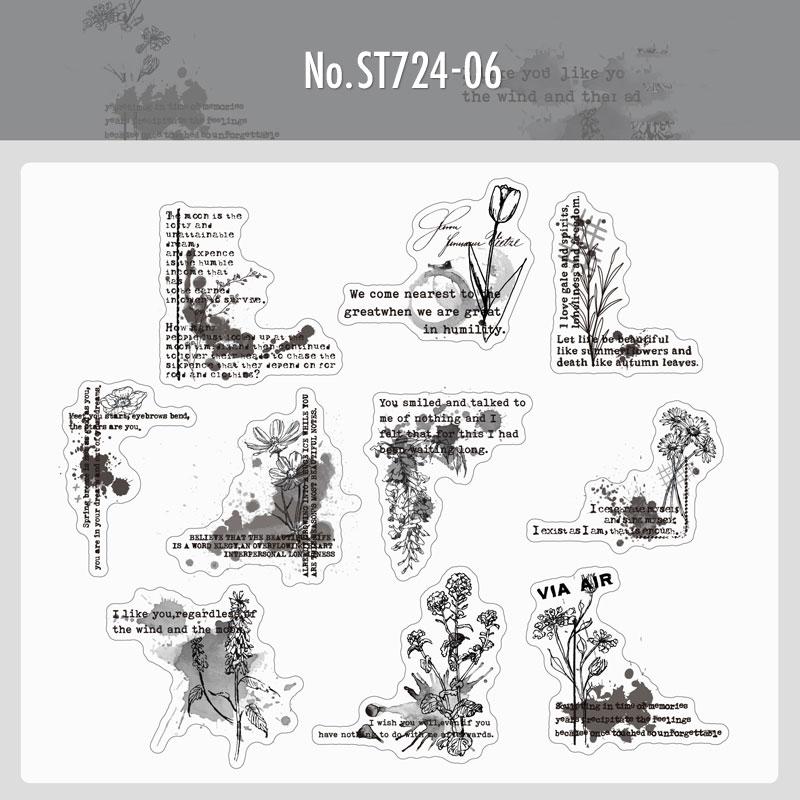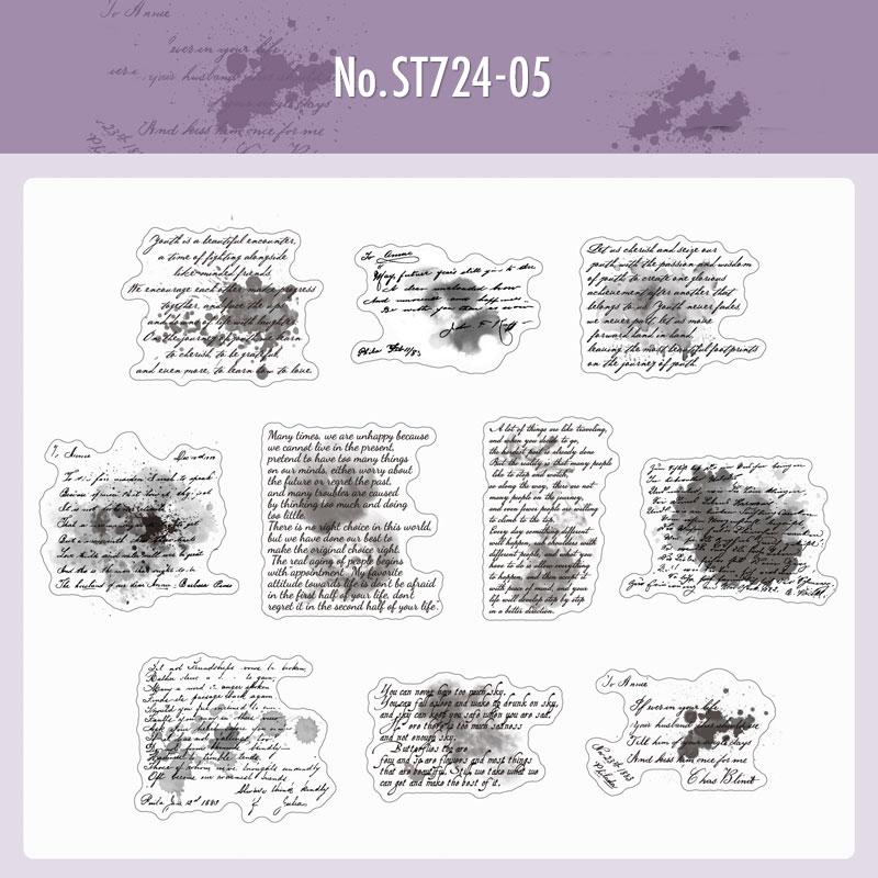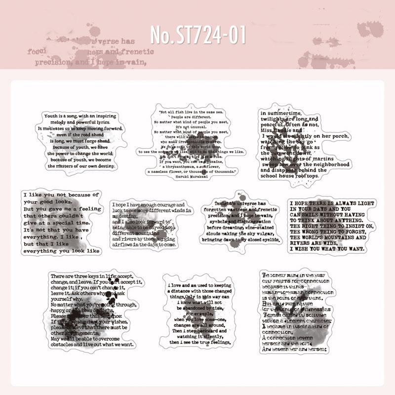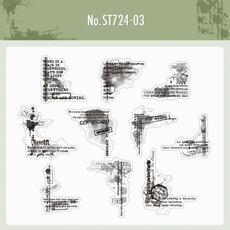 ST724 英語 フレーズ 英文 英単語 アルファベット 滲み 染み モノクロ 墨絵 コラージュ素材 コラージュ シール ステッカー 紙もの 手帳 日記 海外 紙モノ 紙物