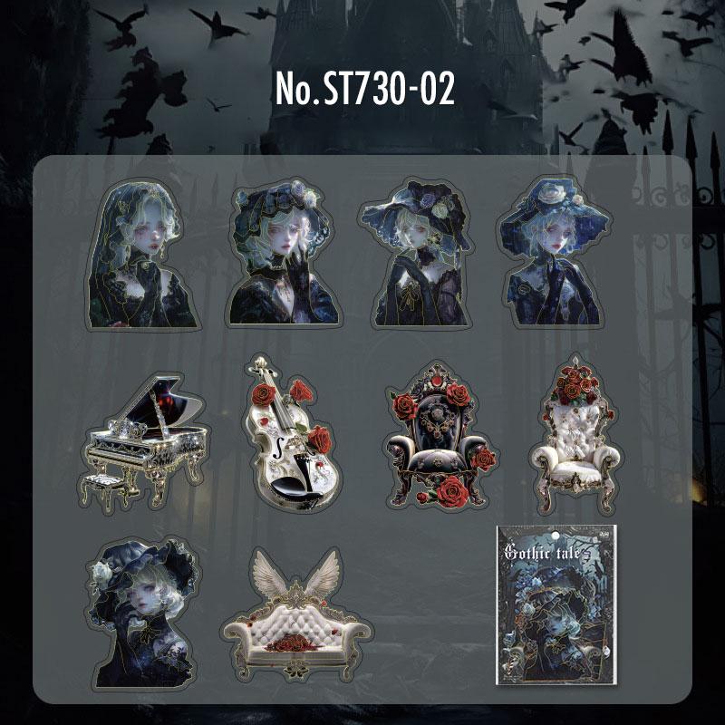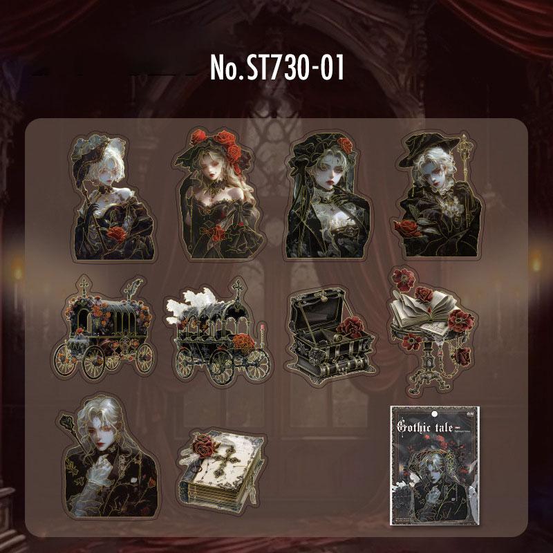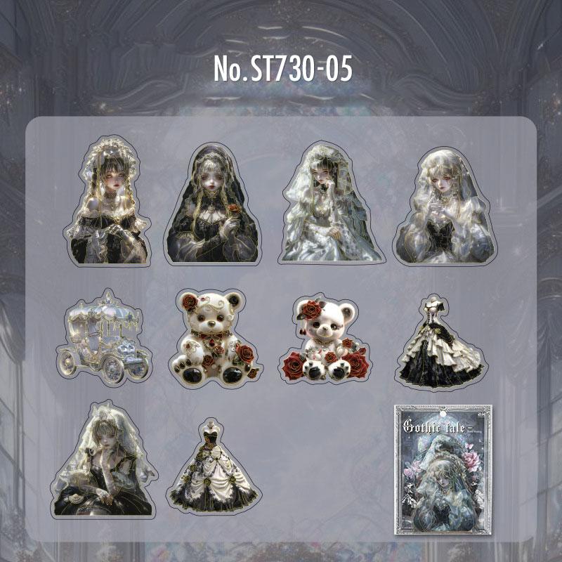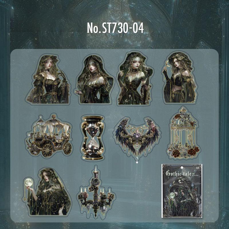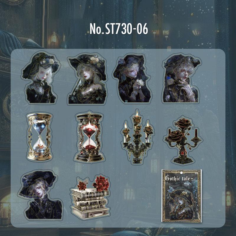 ST730 人物 女性 男性 ゴシック 貴族 ドレス キャンドル ロウソク 砂時計 コラージュ素材 コラージュ シール ステッカー 紙もの 手帳 日記 海外 紙モノ 紙物