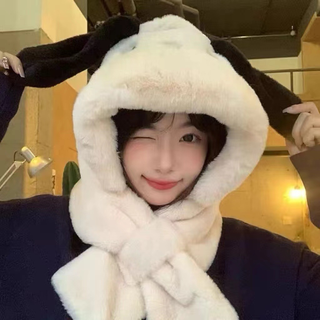 新作登場 冬 暖かいぬいぐるみクマ帽子マフラー手袋3セットミッキー耳マフラー1女性厚く冷たい帽子 耳あて・イヤーマフラー
