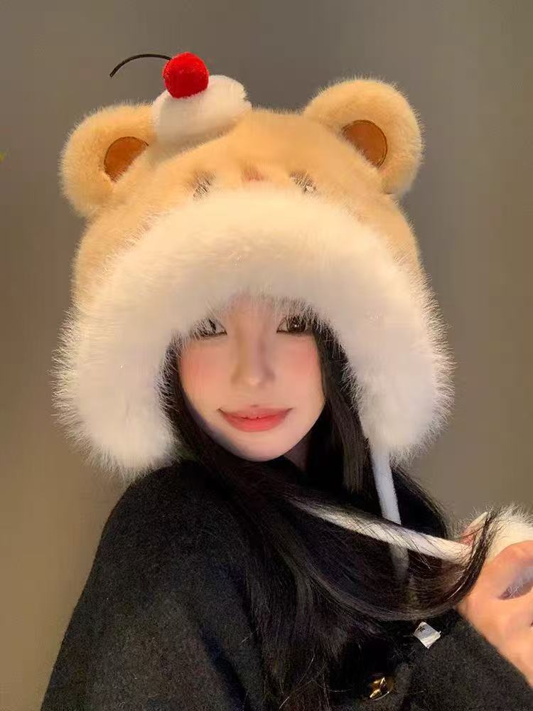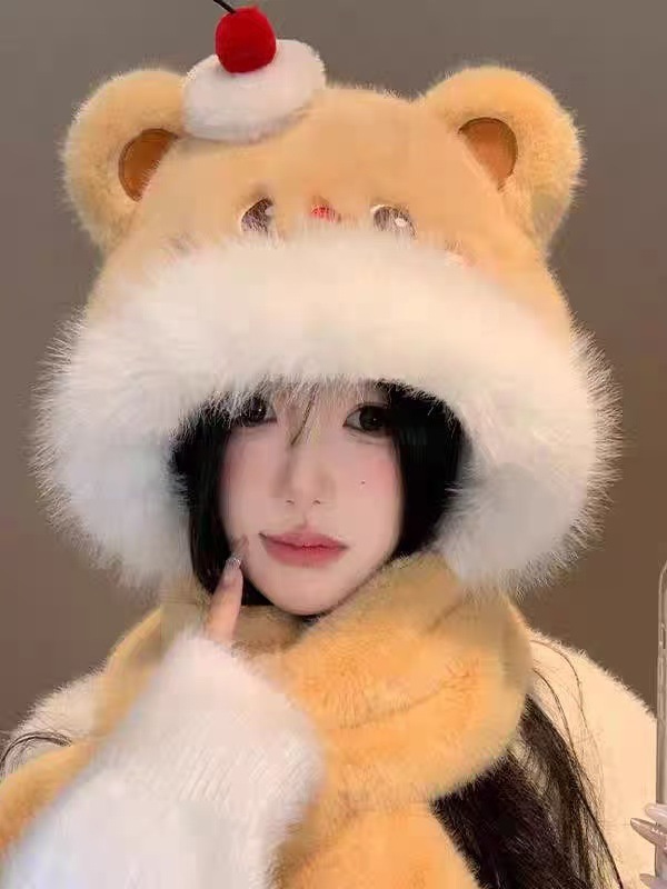 新作登場 冬ワンピースぬいぐるみウサギ帽子マフラーワンピース厚くなったマフラーワンピースかわいいサイクリング暖かいぬいぐるみ帽子 耳あて・イヤーマフラー