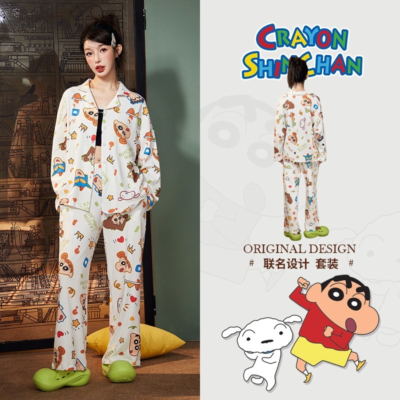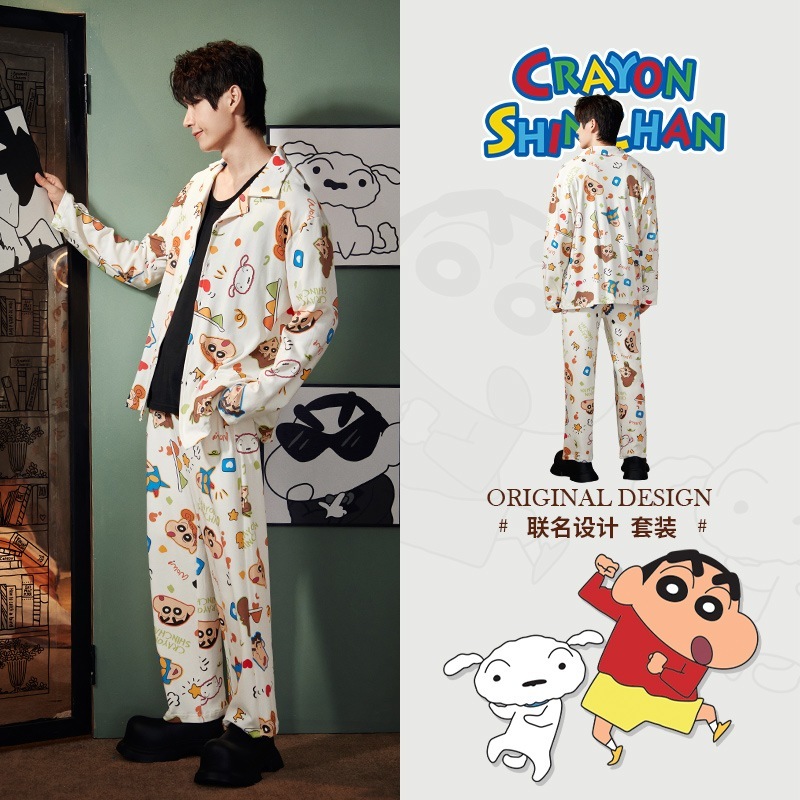 宮蝶【軽くて柔らかい】クレヨンしんちゃんパジャマカップル抗菌純綿長袖漫画風男性ホームウェア
