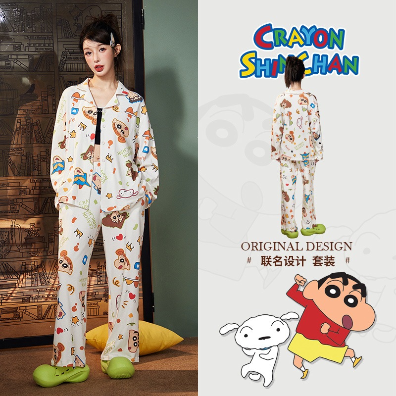 潤母【軽やか】クレヨンしんちゃんパジャマカップル抗菌綿質長袖漫画風男性ホームウェア