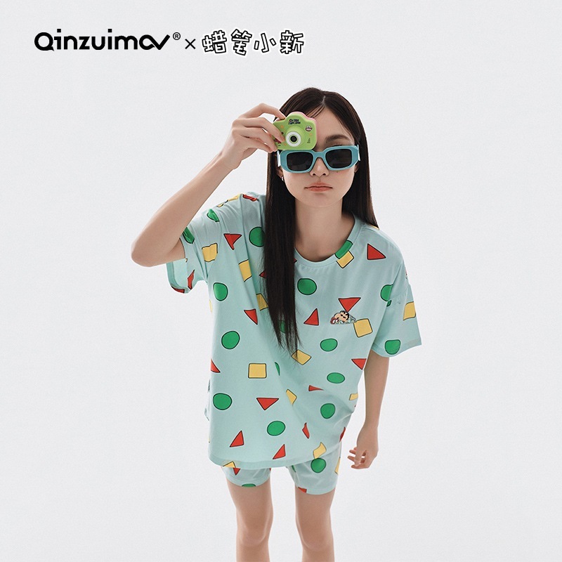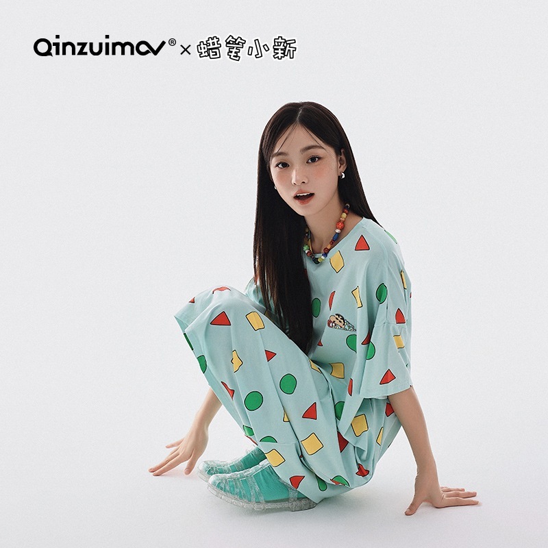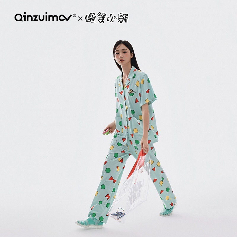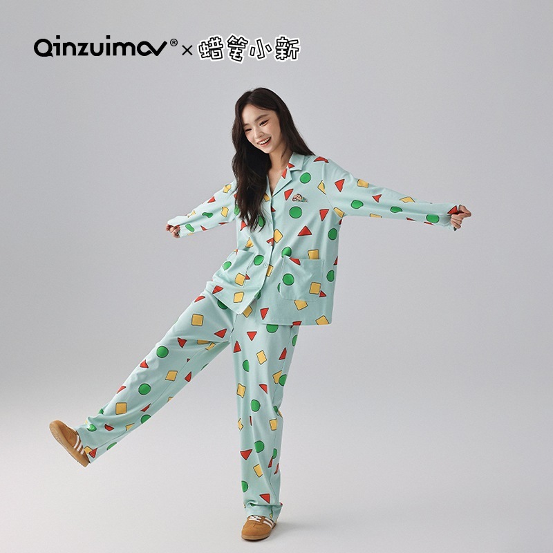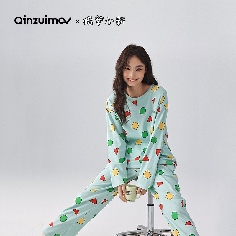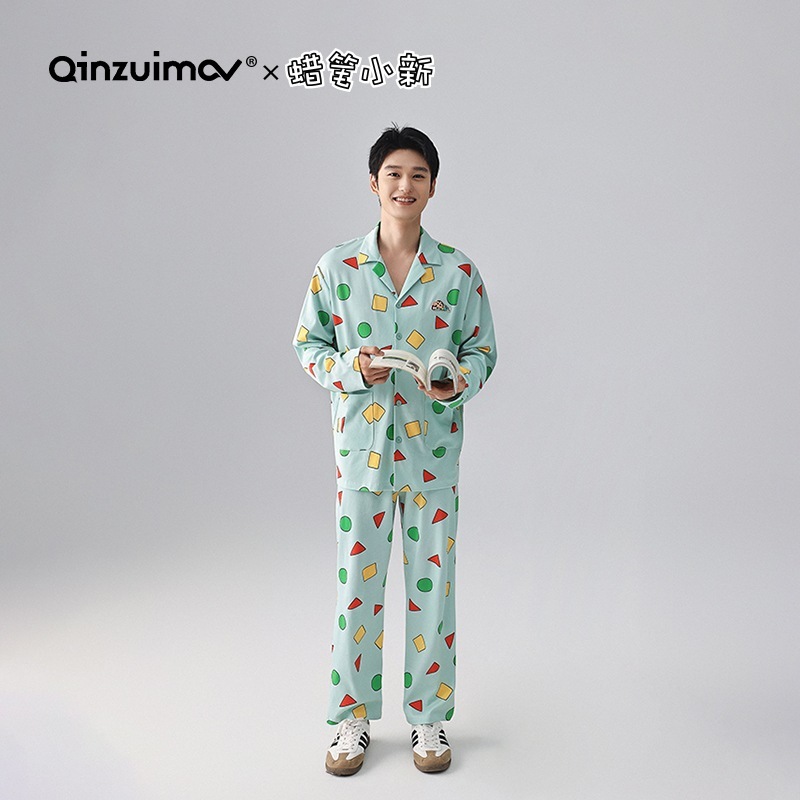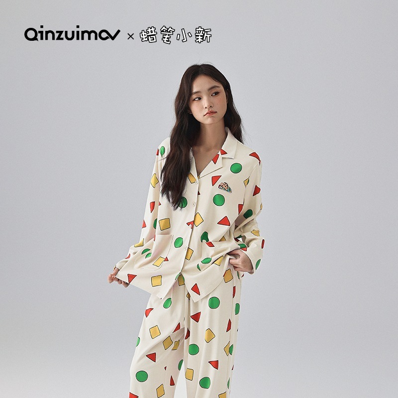 キス猫【クレヨンしんちゃん】長袖はカジュアルなアニメカップルのパジャマを着ることができます