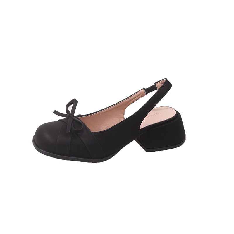 美しい蝶結び留めのつま先が厚手のヒールサンダル女性用夏用アウトドアウェア2025年新作スカート付きで通勤にも使える優しいバレエシューズ