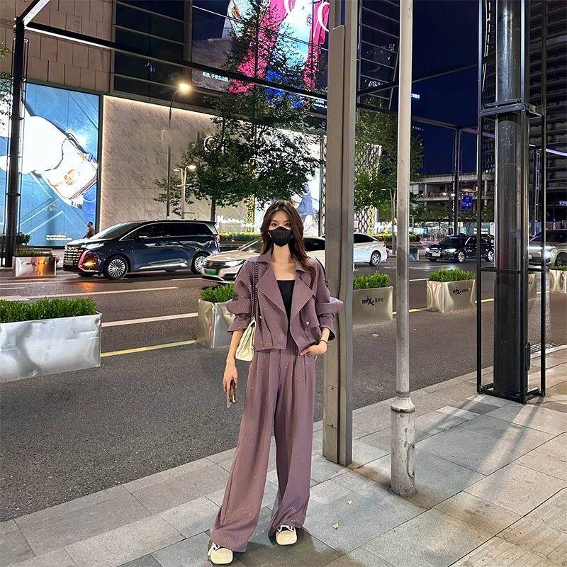 秋新作 おしゃれ セットアップ 韓国ファッション アウター+ストレートパンツ 2点セット 高級感 カジュアル ジャケット/ワイドパンツ 上下セット
