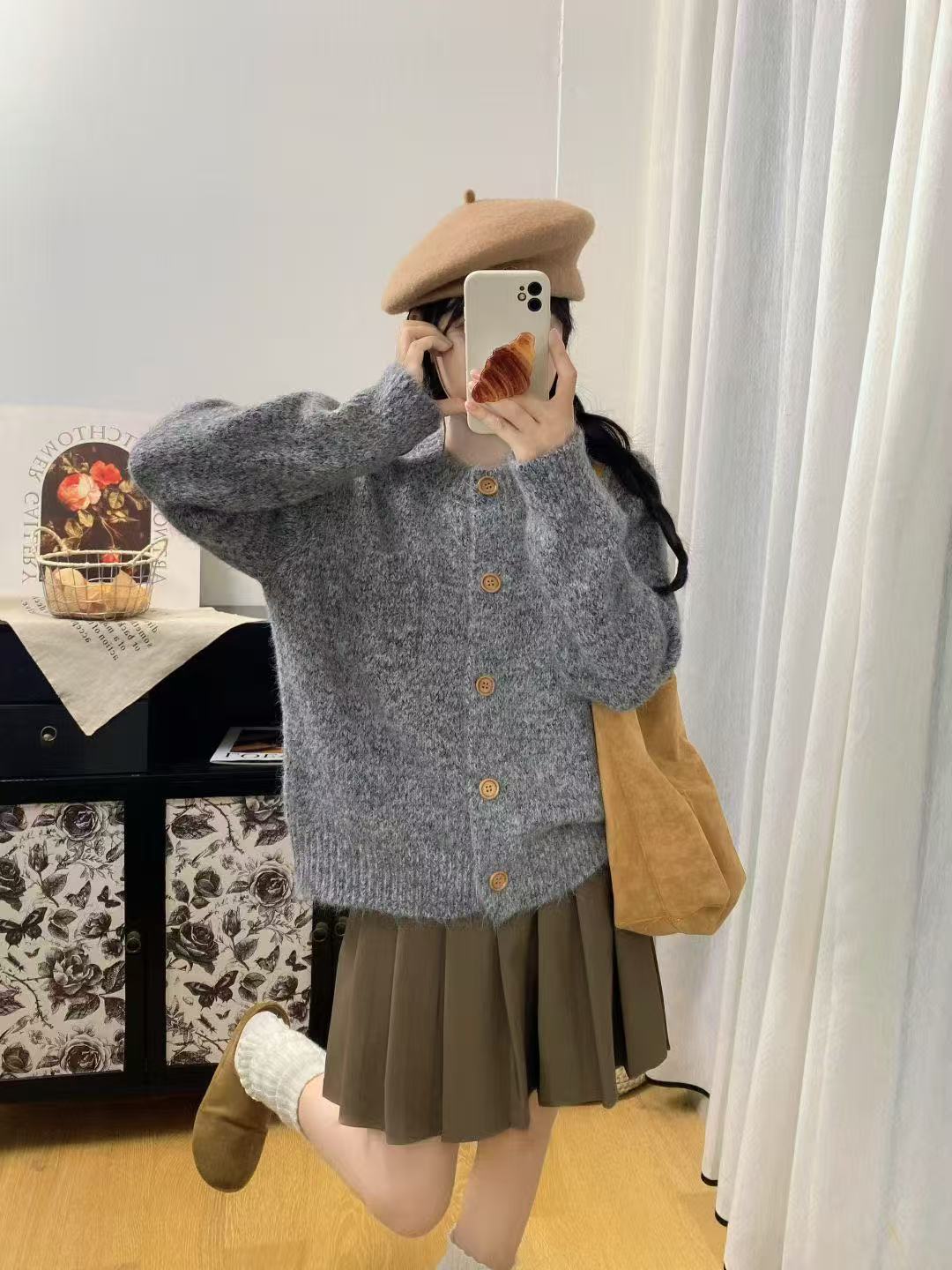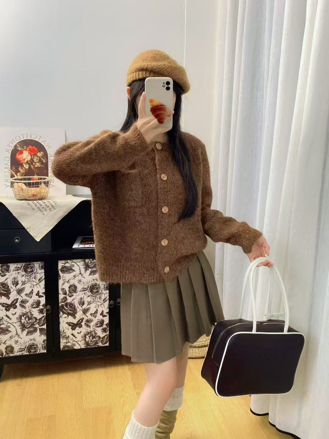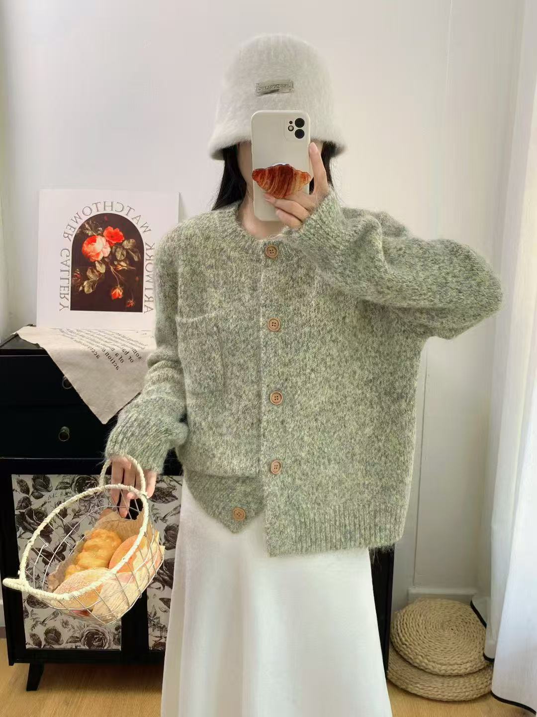 テンダー【厳選ニット】クルーネック 小ポケット ニット レディース 秋 フレンチ ヴィンテージ ソフト セーター カーディガン ジャケット ショート トップス