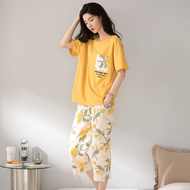 春夏 人気商品 涼しく楽ちん セットアップ ウェア ゆったり カートゥーン コントラストカラー 可愛い 快適 軽薄 綿 質感 カジュアル ホームウェア 二点セット 半袖 7分丈パンツ