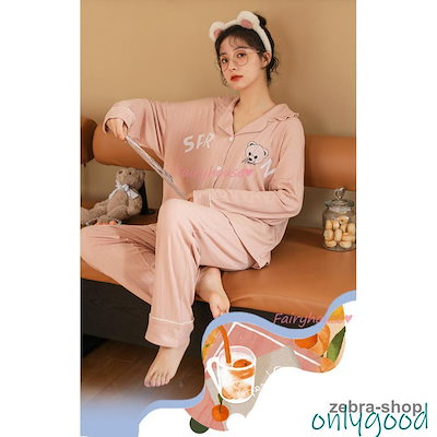 パジャマ ウェア レディース 春秋冬 長袖パジャマ 前開き 可愛いウェア 大きいサイズ 上下セット 女性 部屋着 寝巻き オシャレ韓国風 シンプル
