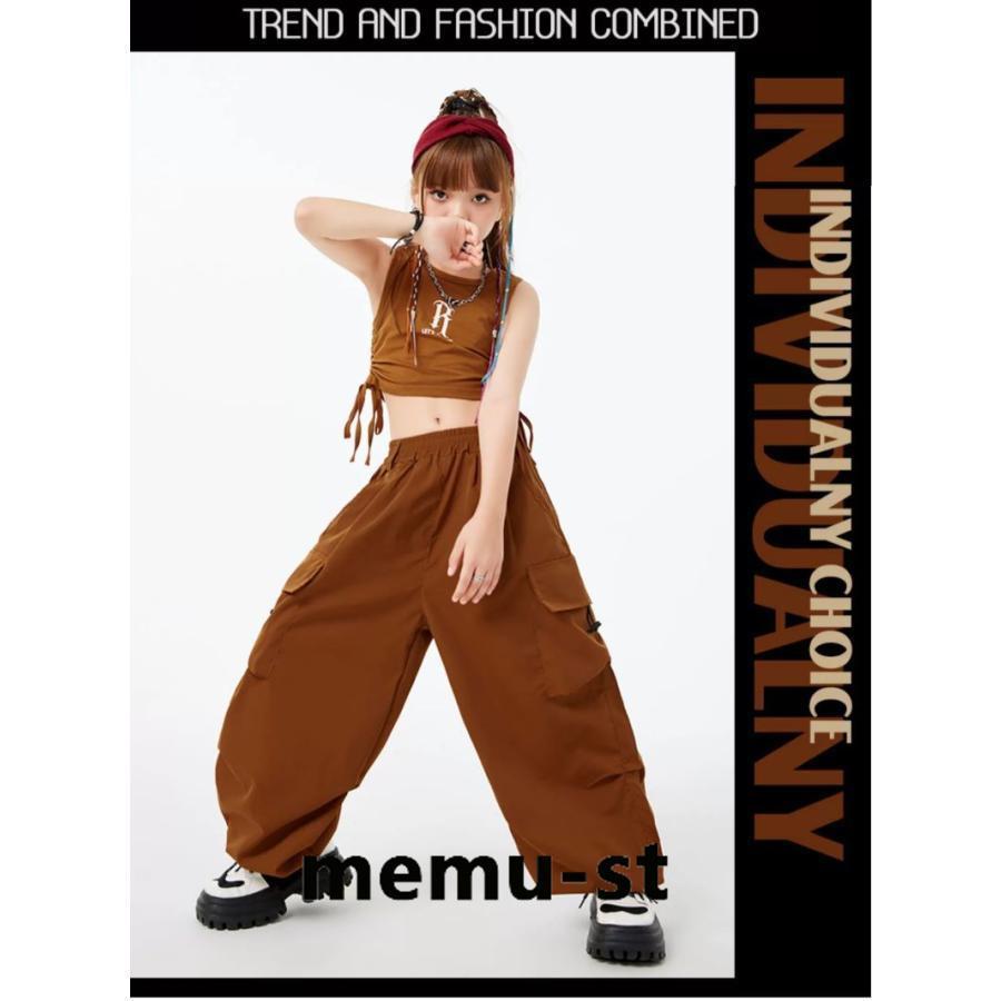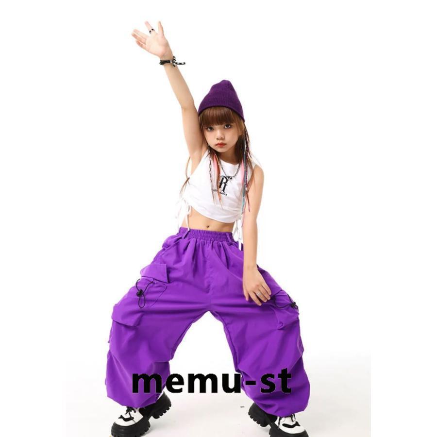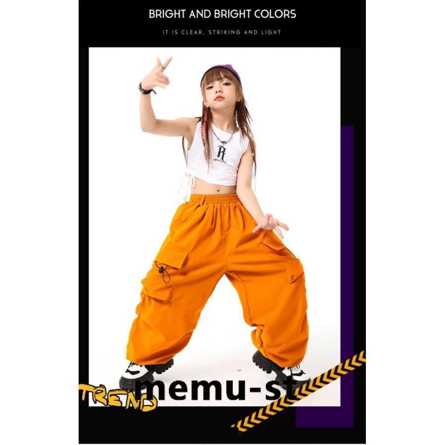 [新品追加/営业促进]ダンス パンツ ヒップホップ キッズ ダンス 衣装 オシャレ カーゴパンツ ダンスウェア 子供ダンス服 KPOP 韓国 オレンジ 紫 赤 茶色 カーキ 白