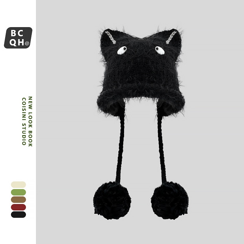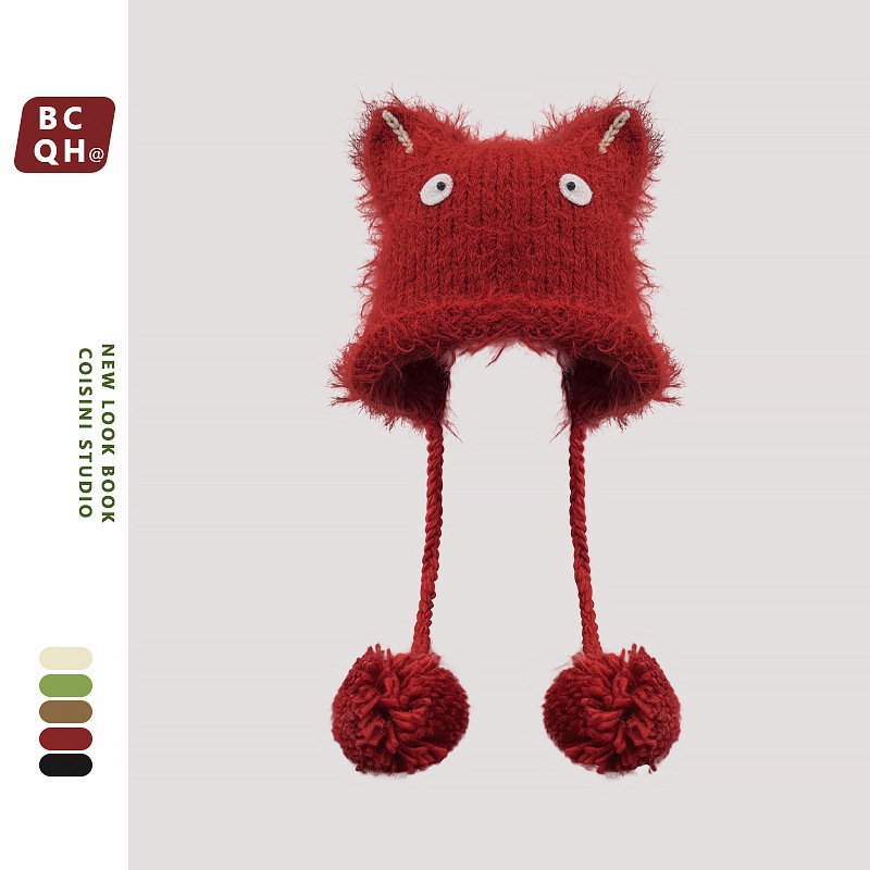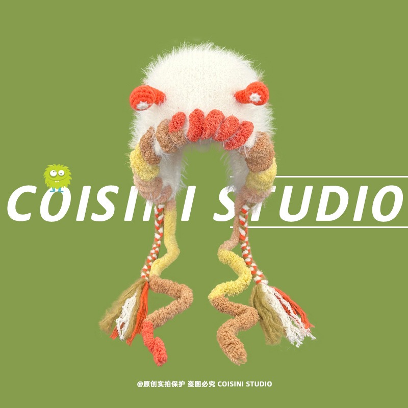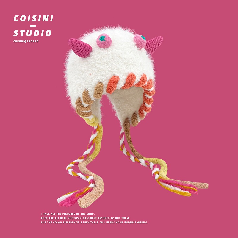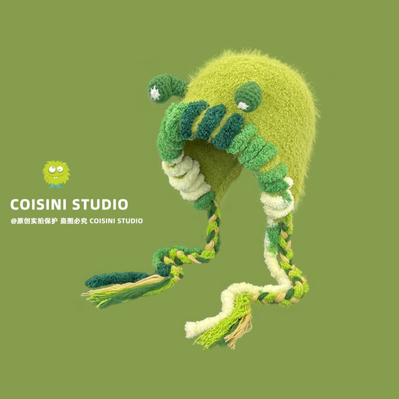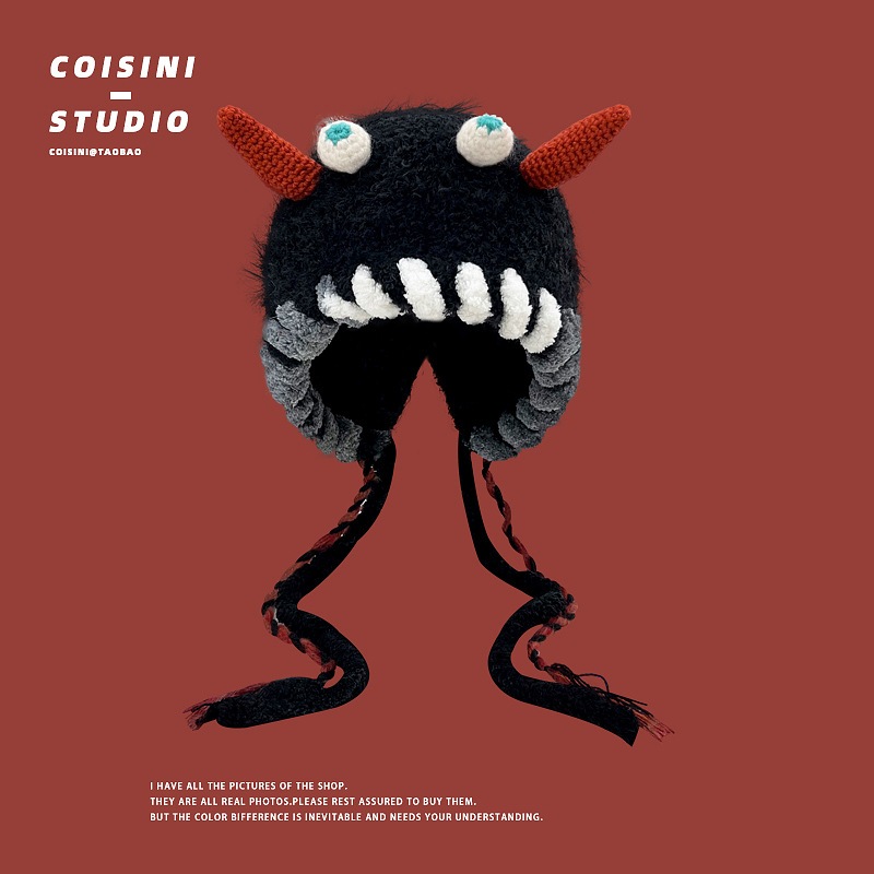 ゆるかわ モンスター フリースハット ~ 秋冬用 防寒 耳あて付き ニット帽 自転車用 ユニセックス