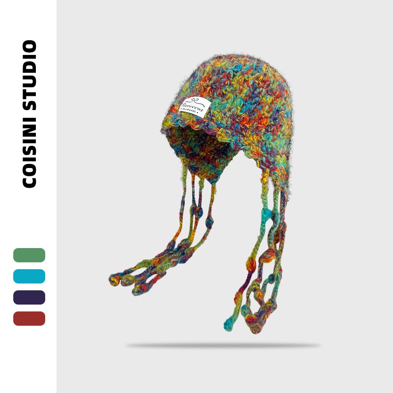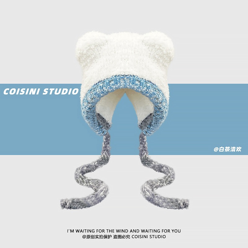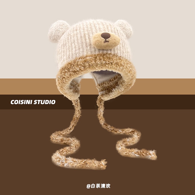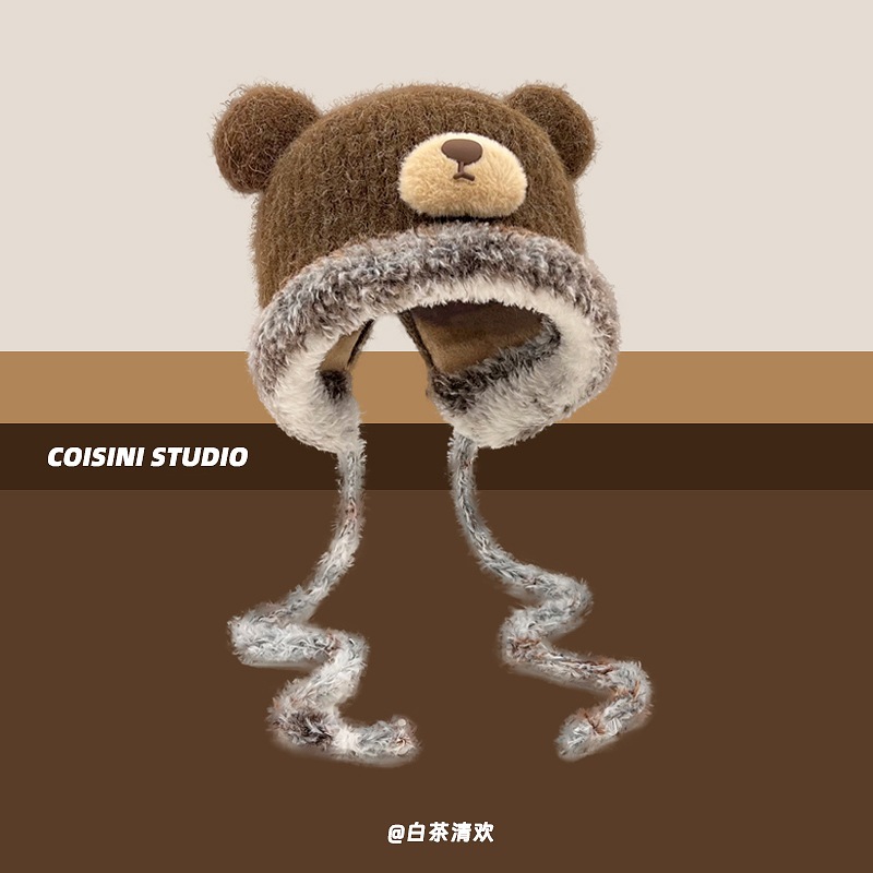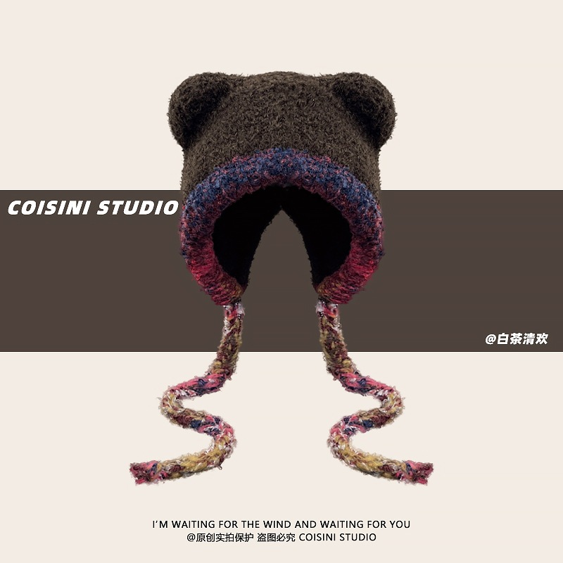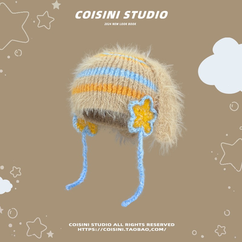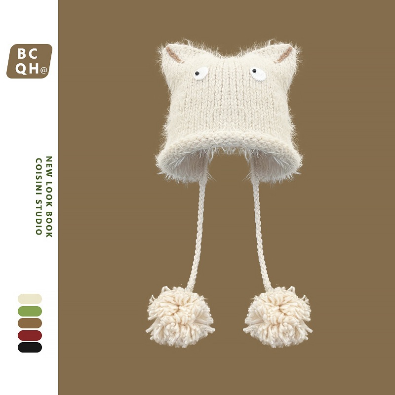 ゆるかわ モンスター フリースハット ~ 秋冬用 防寒 耳あて付き ニット帽 自転車用 ユニセックス