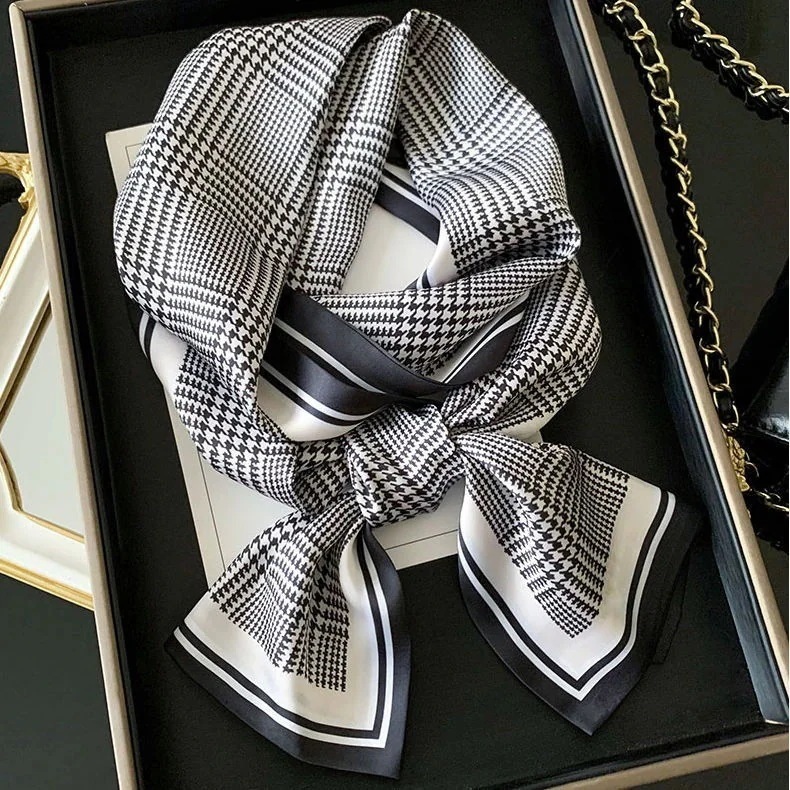 黒と白のチェック柄の長い小さなシルクスカーフ女性との二重層スカーフとの百 バレンタイン