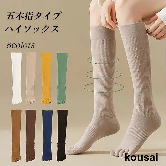 五本指 ハイソックス レディース 靴下 防臭 五本指ハイソックス リブソックス 厚手 5本指ソックス ハイ 速乾 吸汗 綿混 無地 五本指靴下 スポーツ