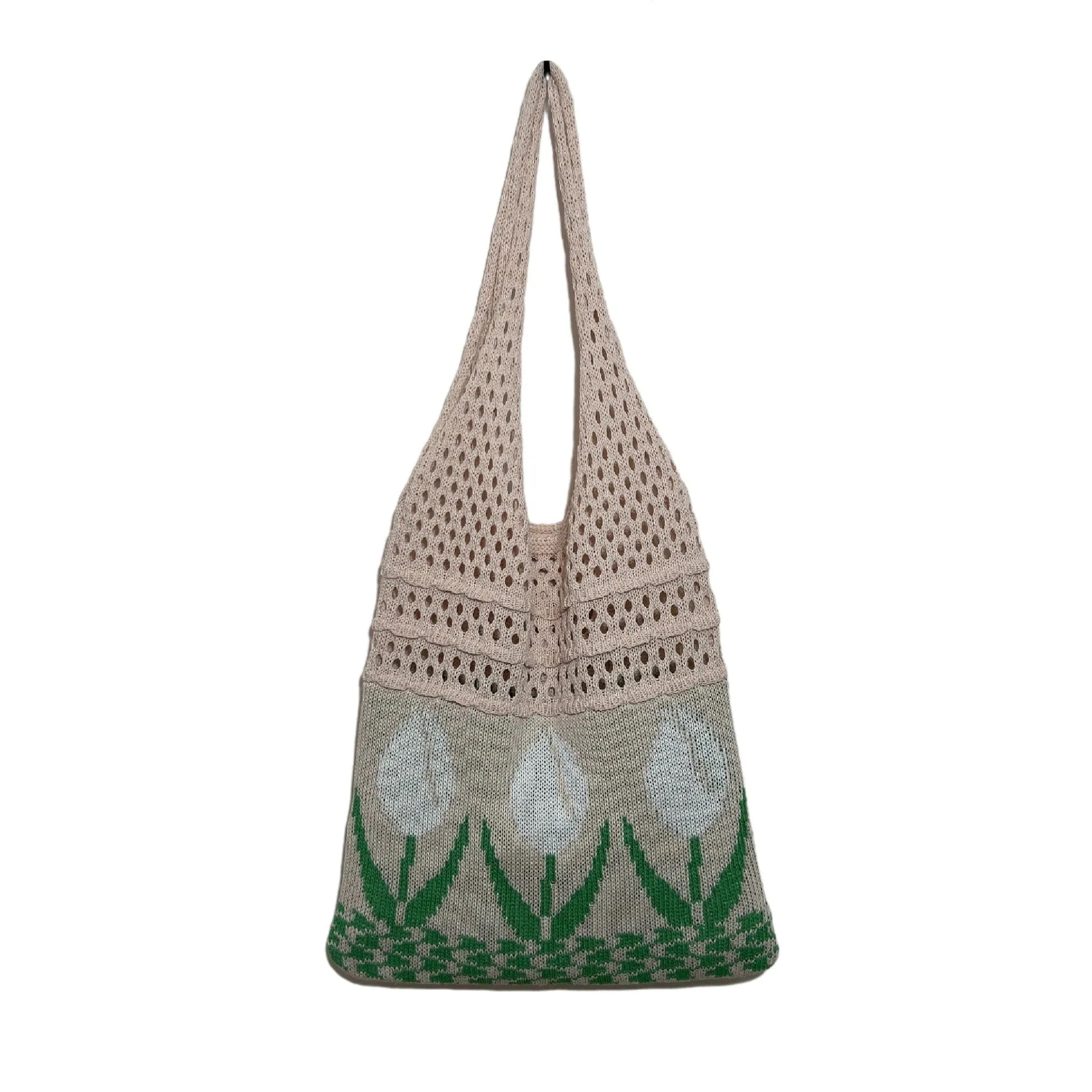 レディース日系復古風リップ花シンプルトレンド ニットバッグ サマーメッシュ中空バッグ トートバッグ マザーズバッグ かごバッグ 軽量かばん 大きめ ショルダーバッグ大容量トートバッグ