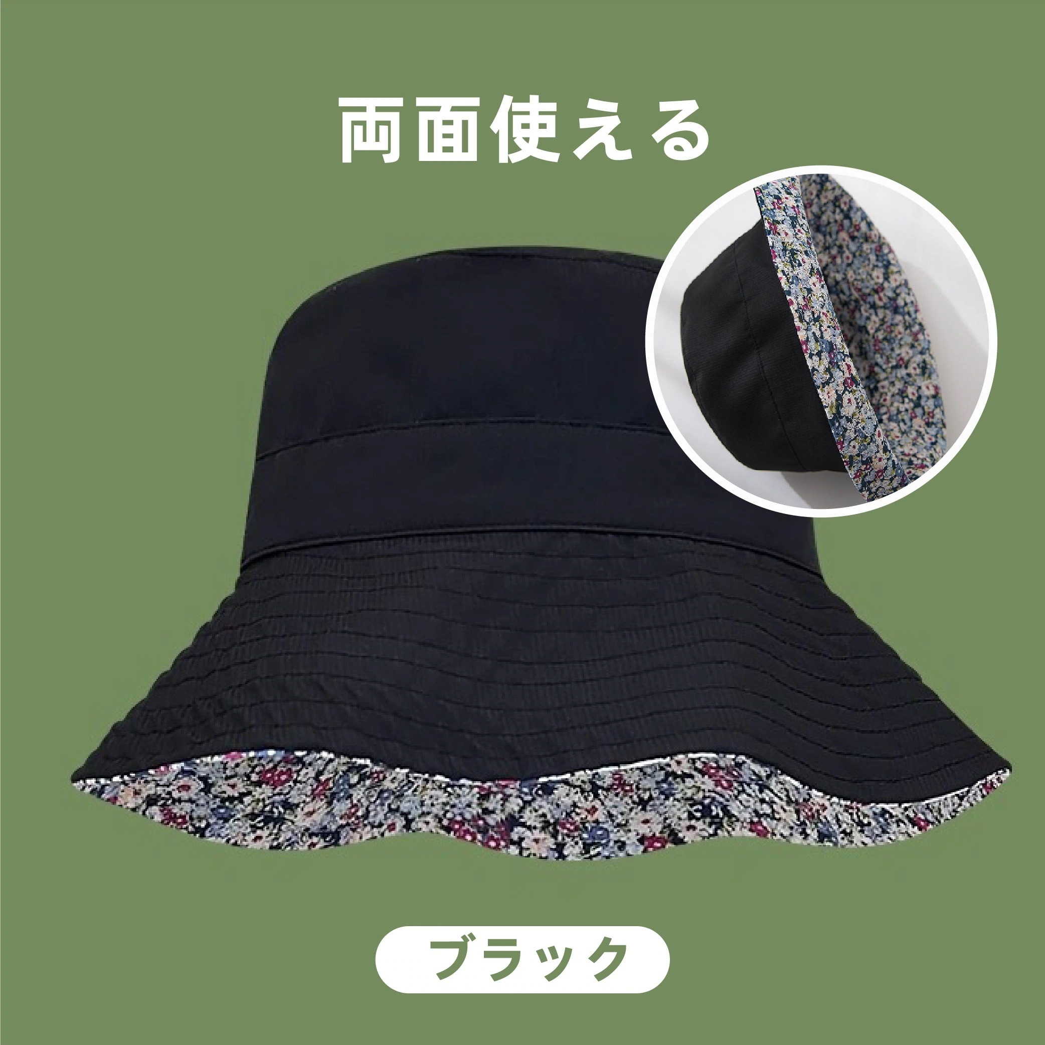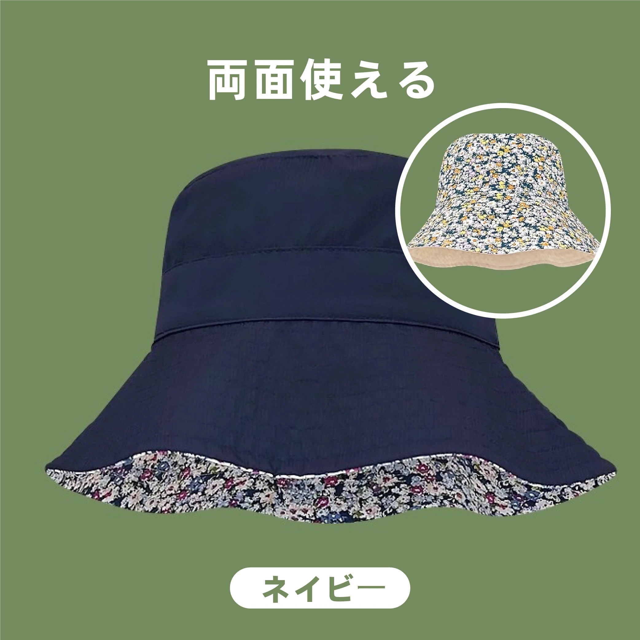 レディース 漁師帽 UVカット帽子 両面使える 無地 花柄 女優ハット 紫外線カット つば広 折り畳み 完全遮光 小顔効果 あご紐付き 携帯便利 リバーシブル 日焼け防止 漁師帽 女優帽