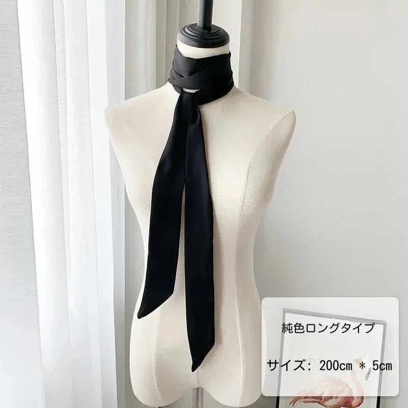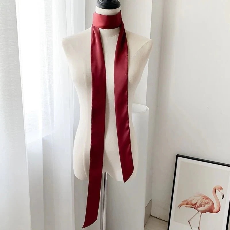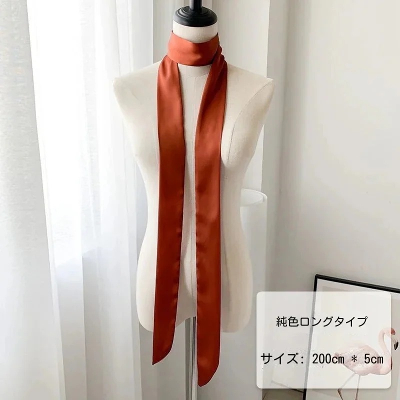 超長い0センチメートル無地薄い狭い長いシルクスカーフ女性小さなネッカチーフ装飾的な髪リボンリボンタイバッグリボン バレンタイン