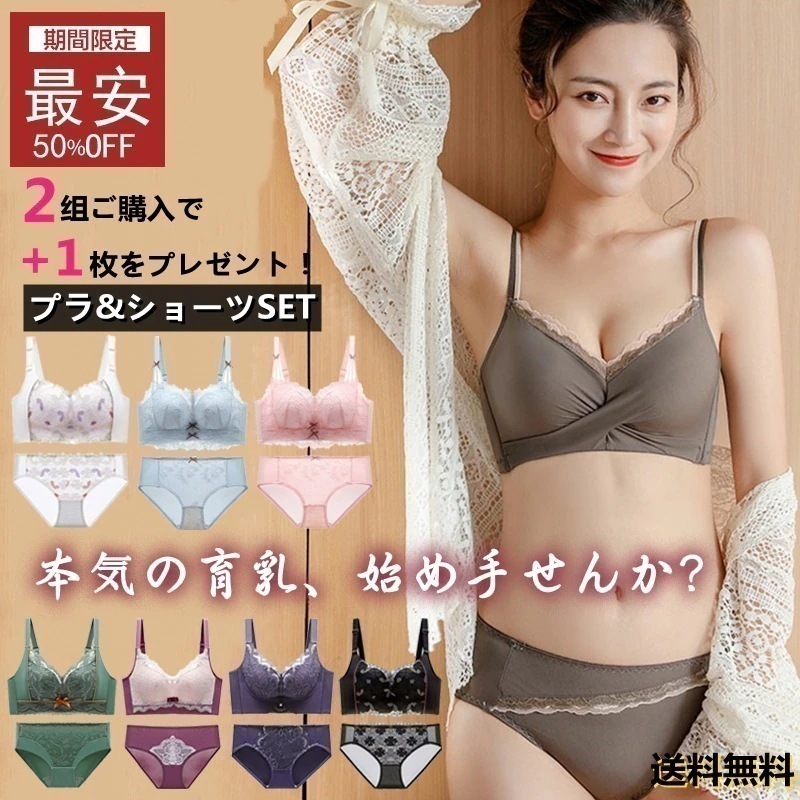 ブラ上下セット0type+ 毎日更新刺繍レース可愛い下着セットナイトブラファッションセクシーランジェリー 美乳 れる ナイトブラ可愛い ショーツ カップ付きイン
