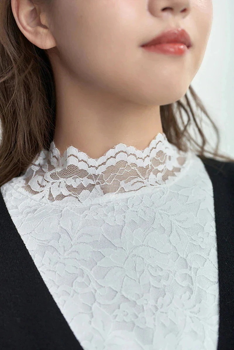 裏起毛レーストップス レースインナー レディース 裏起毛 インナー 繊細レース 見せるインナー 長袖 シャツ ブラウス