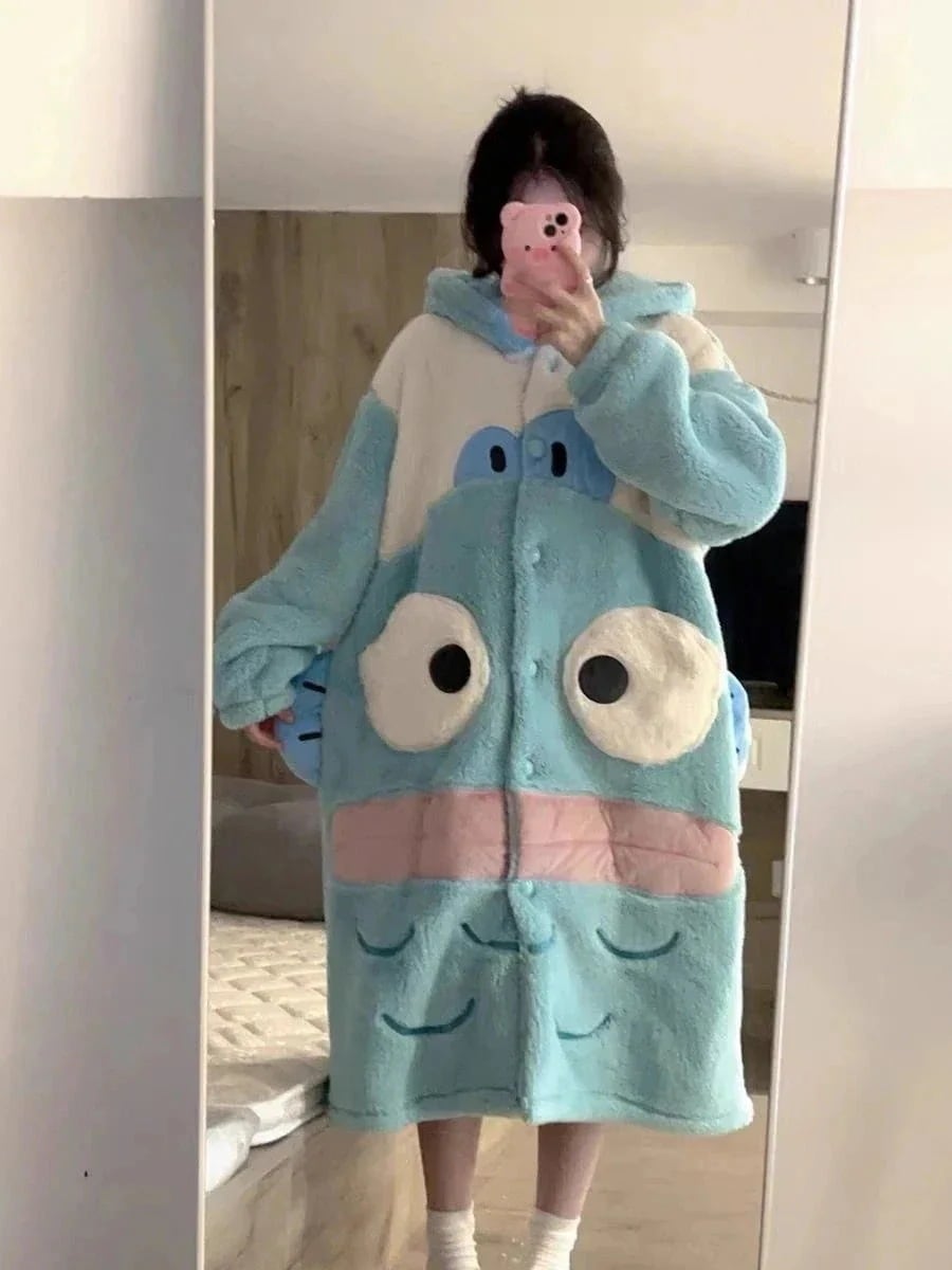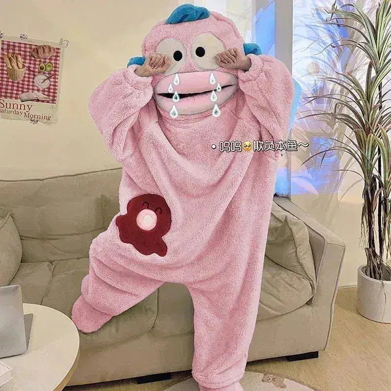 ハンギョドン パジャマ 着ぐるみ 冬 かわいい もこもこ ルームウェア コスプレ 部屋着 厚く暖かい レディースフード付きパジャマ 2点セット夏パジャマ