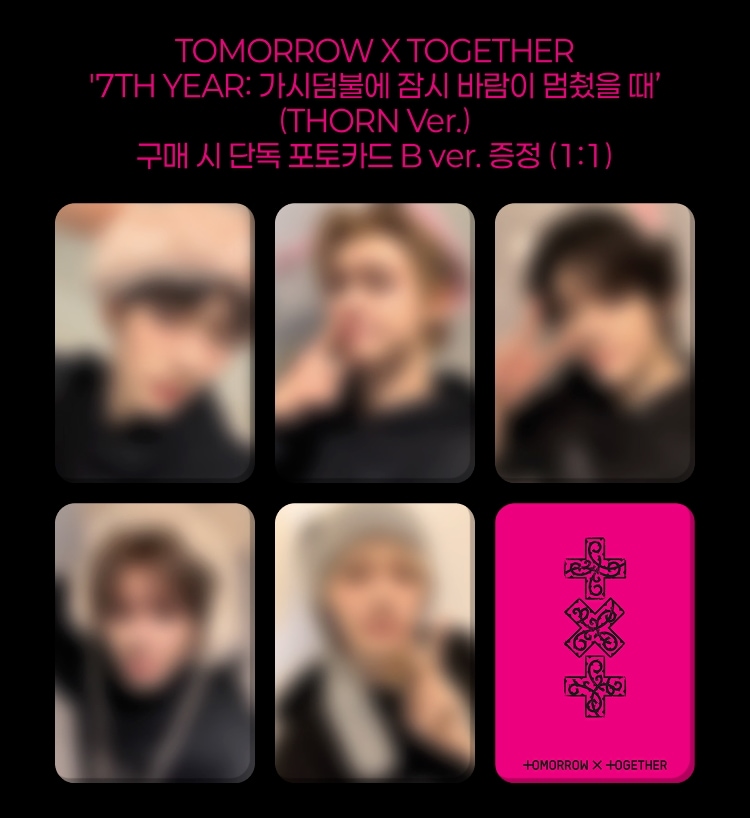 5 5mmy*** 2026.04.26 Type:01. TXT CU Thorn Ver. 5枚 特典 セット(+2759円) 注意事項:アルバムは提供されません。 チャートに反映:各種チャートに反映されます。 発送:4月18日以降、順次発送いたします。オプション : Type:01. TXT CU Thorn Ver. 5枚 特典 セット(+2759円) / 注意事項:アルバムは提供されません。 / チャートに反映:各種チャートに反映されます。 / 発送:4月18日以降、順次発送いたします。