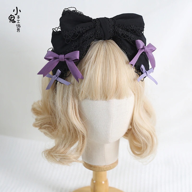 【1点ご購入 で10点プレゼントいたします】少女黒紫ゴシックdollLolita姫レース歯付き滑り止めリボンカチューシャ
