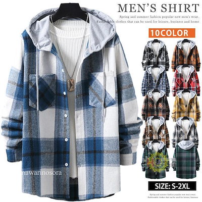 今月のプロモーションーフード シャツ ネルシャツ メンズ カジュアルシャツ チェックシャツ フード付き 長袖チェックネルシャツ パーカー