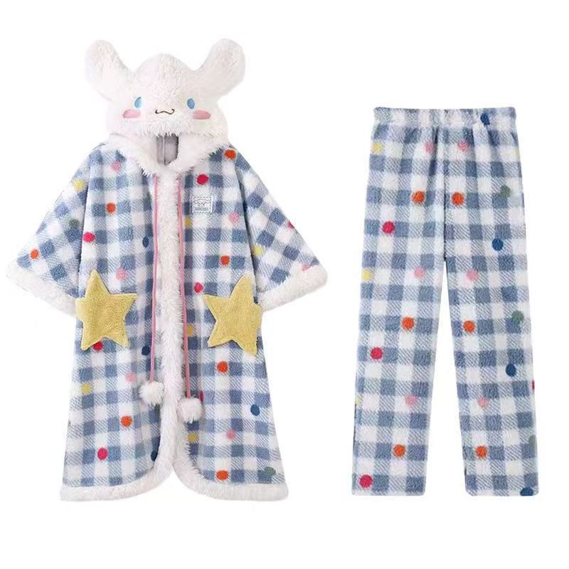 かわいい冬の新作サンゴ絨毯連帽パジャマパジャマ新型加絨加厚部屋着スリーパー外着