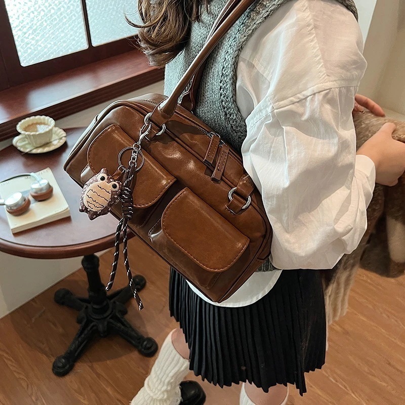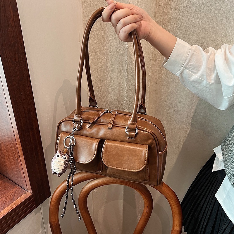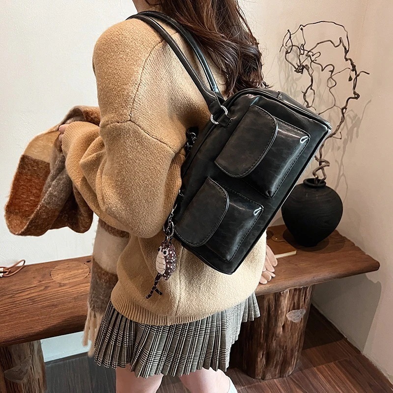 流行のカバンの新型ファッションの女性は秋に合わせて小さい方のカバンを持っています