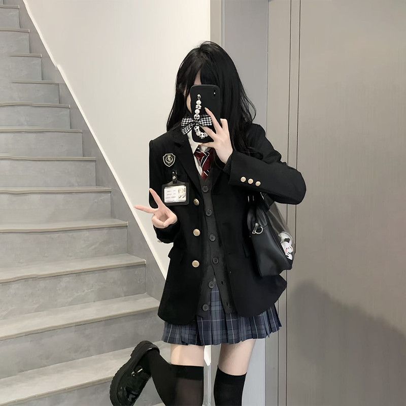 JK制服セット 秋冬用 正規品 スクール風 チェックスカート ニットカーディガン 重ね着 フルセット