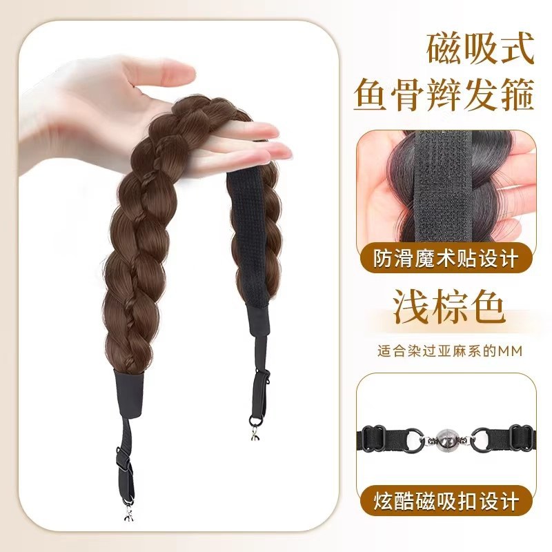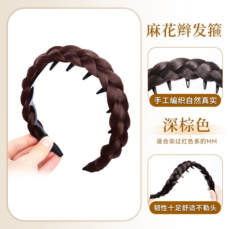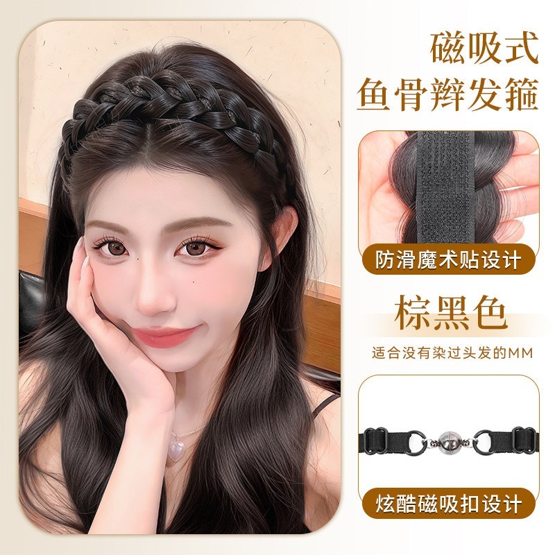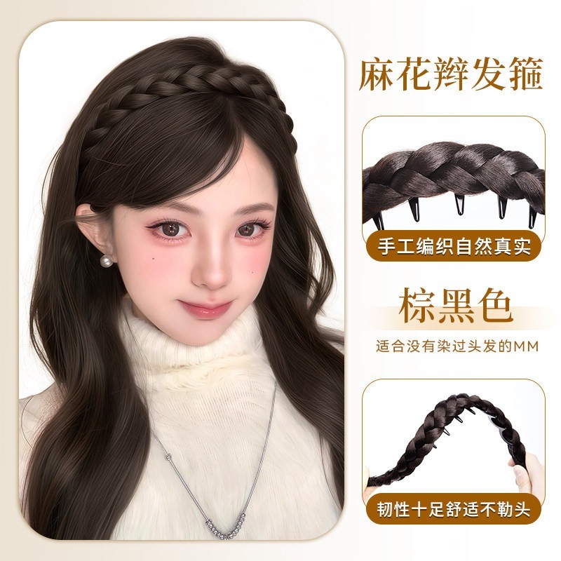 鋸歯状の魚骨編みヘアバンド三つ編みヘアバンド歯付きヘアバンドウィッグ一体型高めの頭頂部で分け目をカバーするウィッグヘアアクセサリー