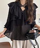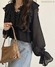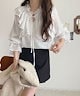 Classical Elfmilybilet トップス ブラウス レディース 前後2WAY ピコレース フリル襟 コットンボイル ラッフルデザイン キャンディースリーブ シアー感 薄手素材 上品 可愛らしい ふわっと