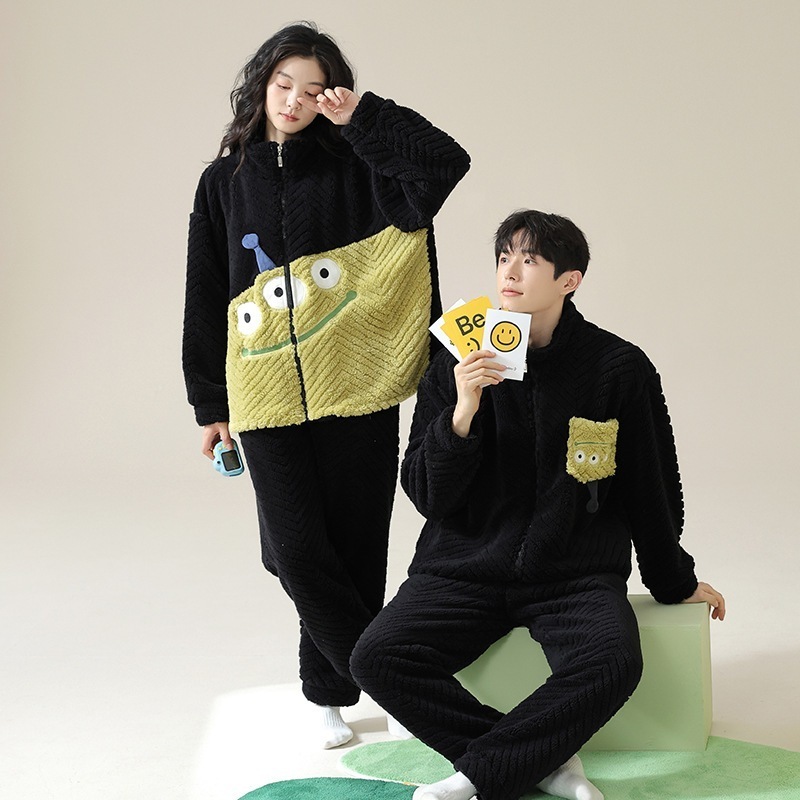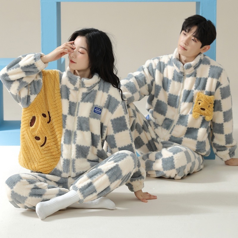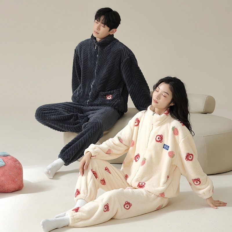 【 秋冬爆款ヒット】カップル パジャマ セット 冬 レディース フランネル 秋冬モデル 厚手 中綿入り メンズ ホームウェア ジップ