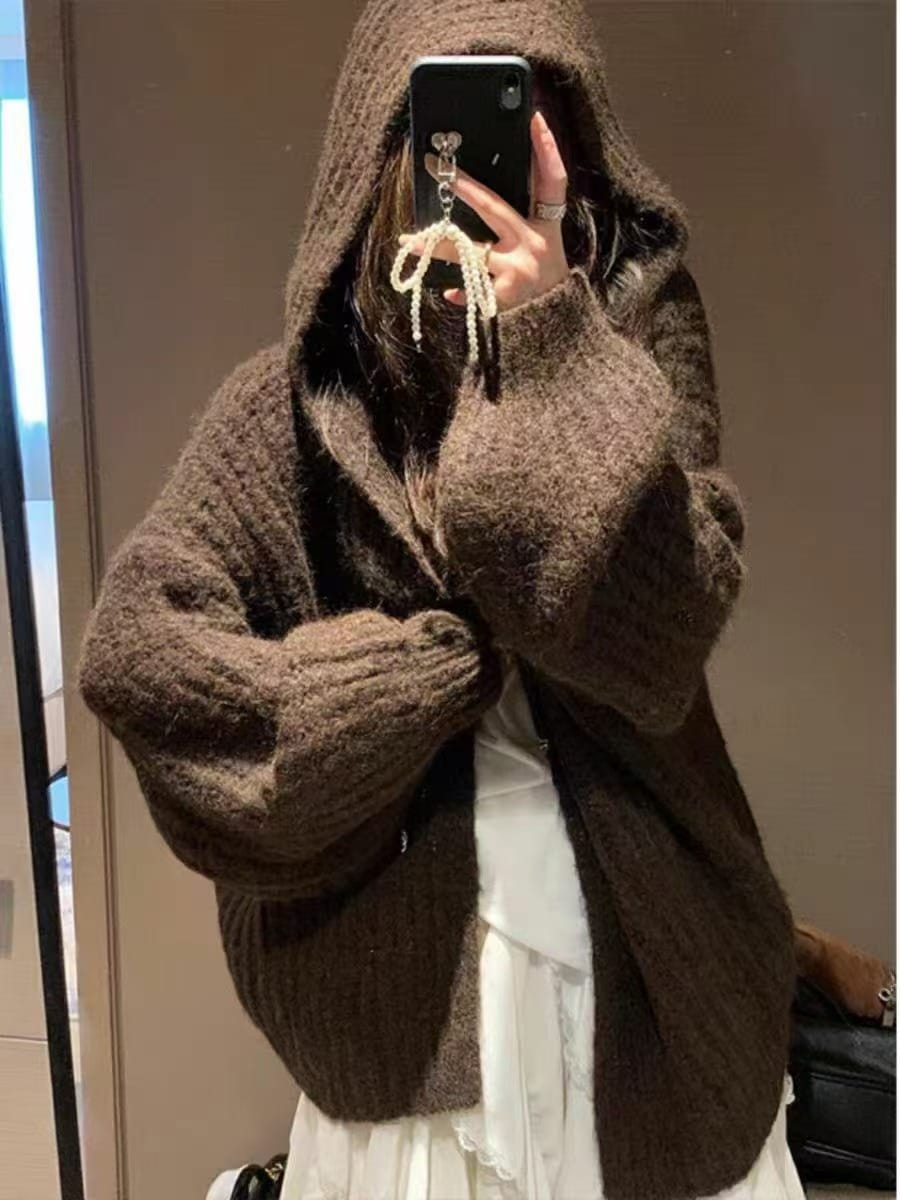 【 秋冬爆款ヒット】ヴィンテージ アルパカ フード付き セーター カーディガン レディース 秋冬 ミドル丈 とろみ ニット ジャケット ゆったり ごろごろ トップス