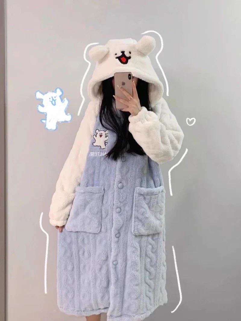 冬の新作 大好評 パジャマ ins 着ぐるみパジャマ ルームウェア レディース コーラルフリース かわいい 寝スカートの部屋着 厚手