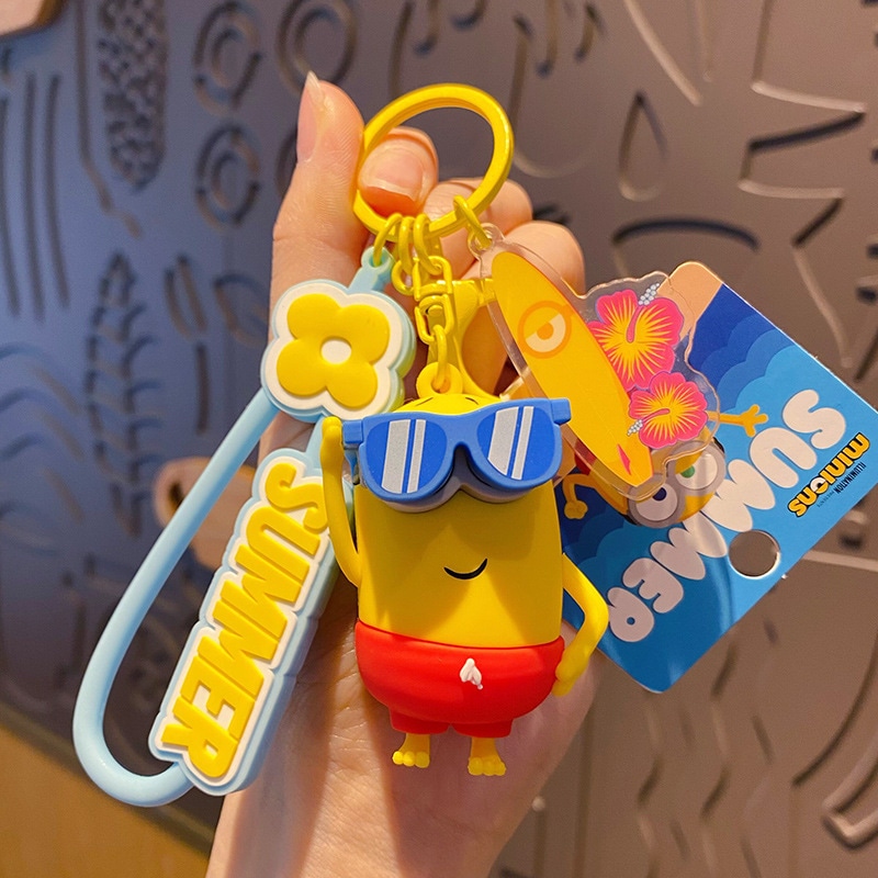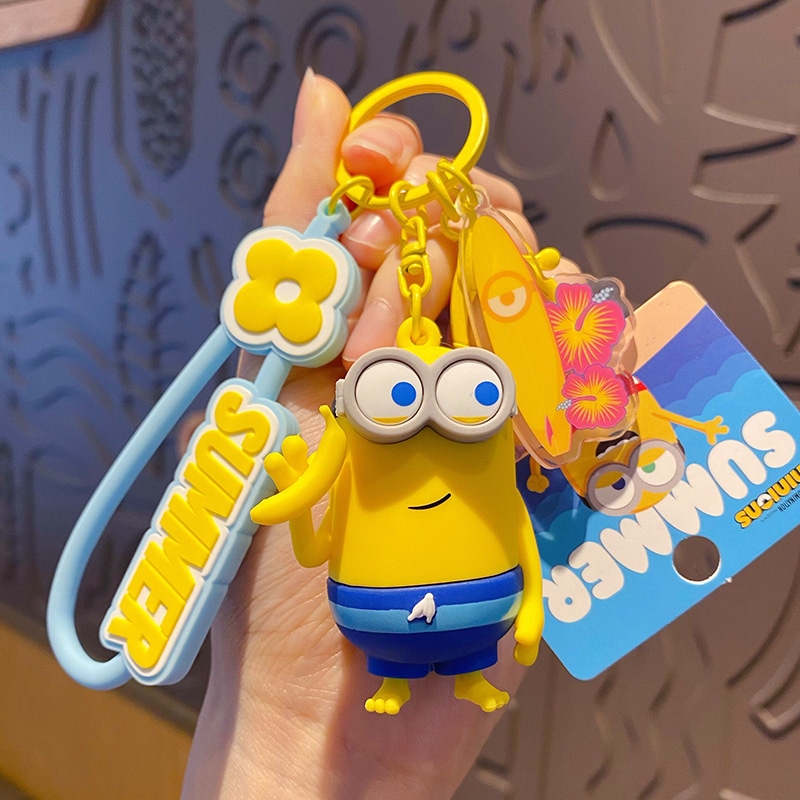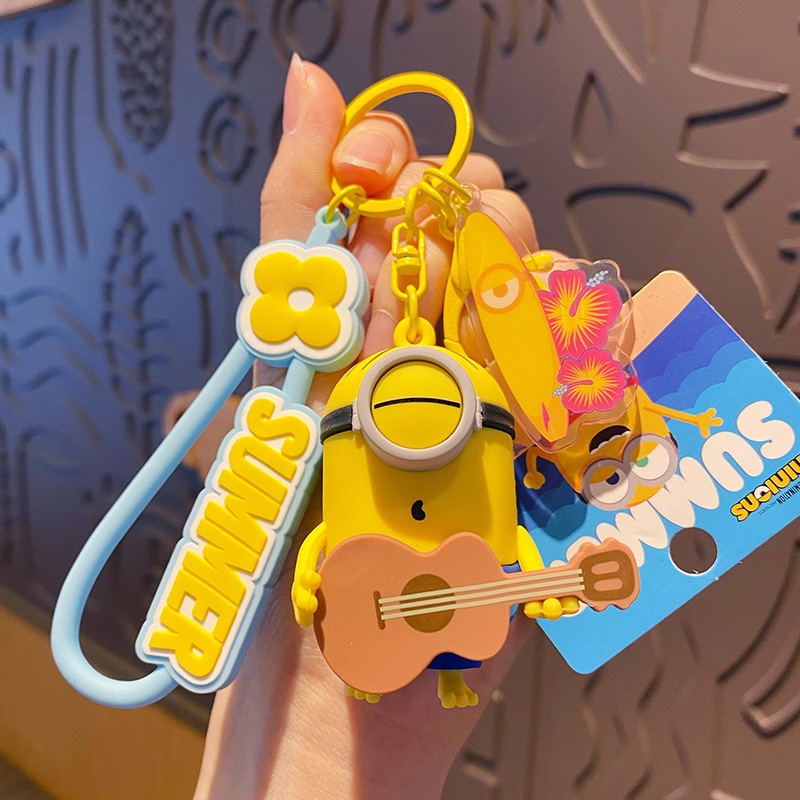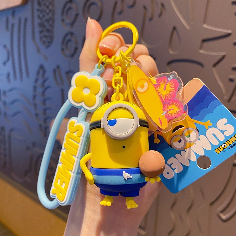 ミニオン「サマータイム」キーホルダー 可愛いカートゥーンカップルバッグキーチェーン・小ギフト