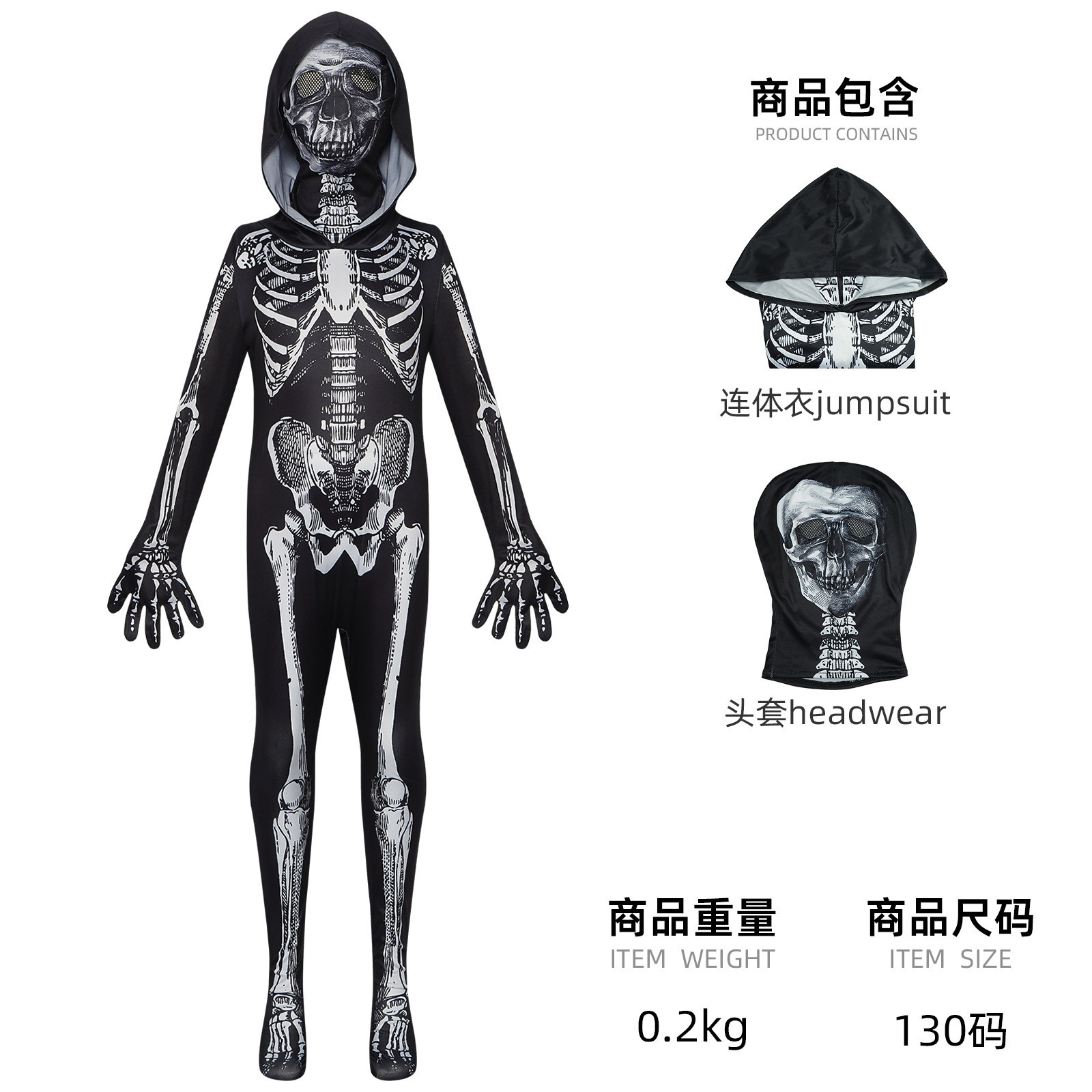 子供用ホラースカルレオタードcos服ハロウィーン死神フード付き連体服コスプレ服