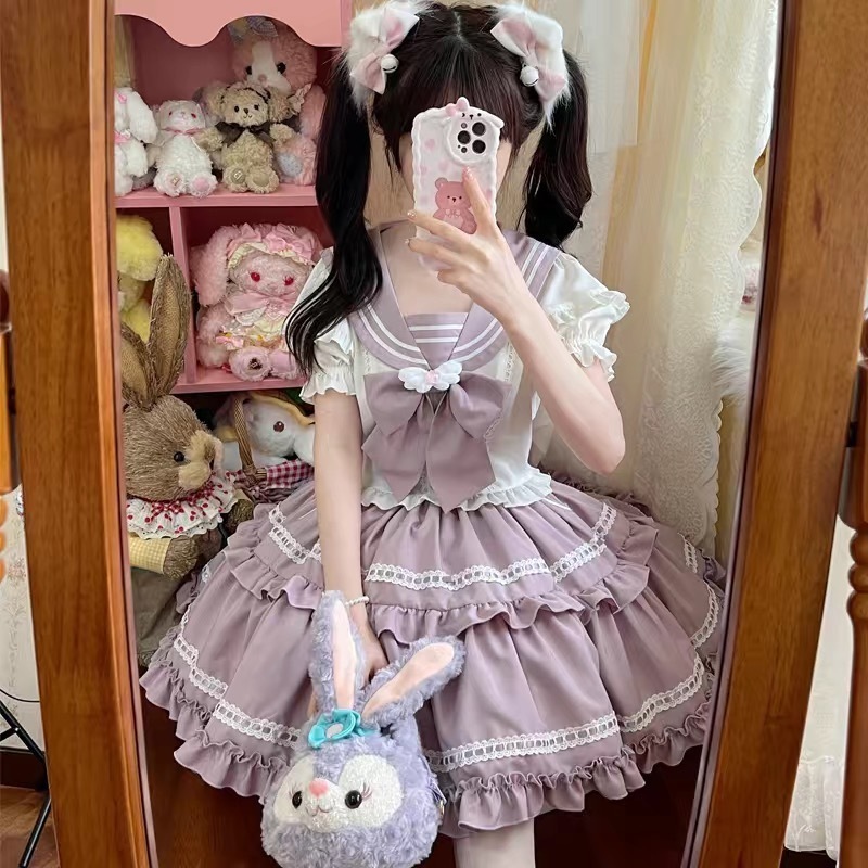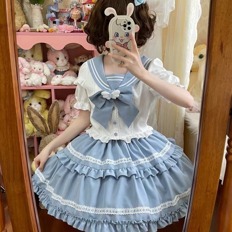 コスプレ セットアップ トップス セクシー スカート ワンピース 【最安値に挑戦】リトルマリンロリータ洋装ネイビーネック jk 半袖OP